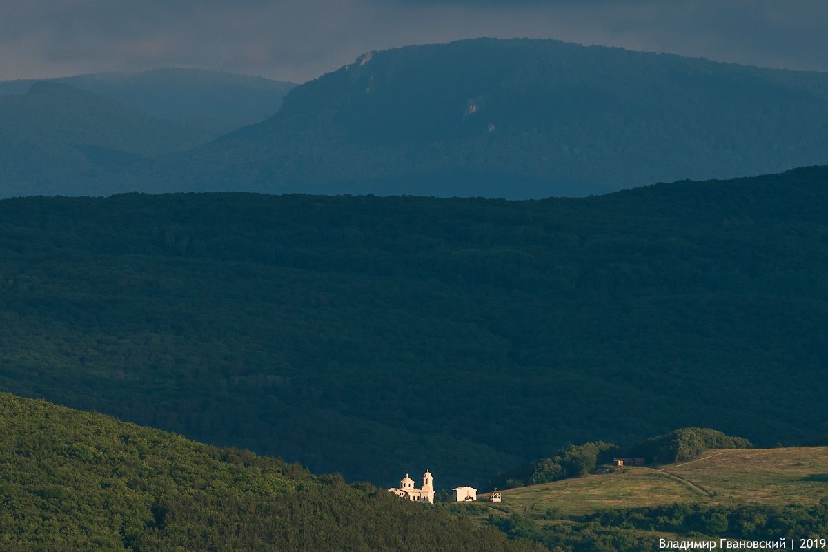 В начале июня мы с Никитой и Сашей заночевали на городище Кыз-Кермен. Этот пещерный город легкодоступен, сюда часто приходят днём группы из Бахчисарая и Баштановки, но меня интересовал в первую очередь ночной и рассветный вид на город Тепе-Кермен. Зрелище, и впрямь, было отменным — подсвеченный луной город был виден, как днём, рассвет принёс всю палитру красок на небе. Кроме того, очень понравился вид церковь в Лаки, которая отлично просматривается с мыса
