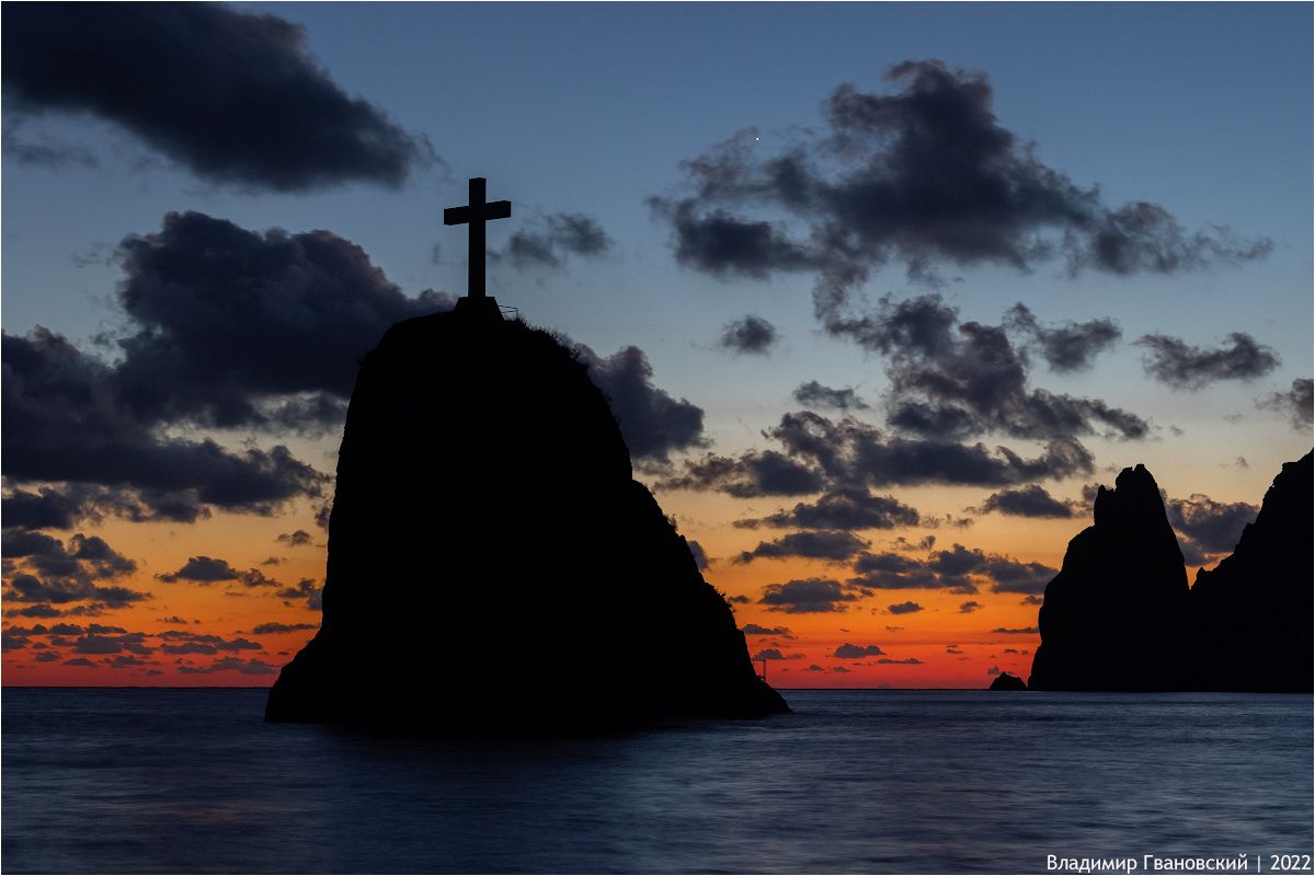 У Яшмового пляжа есть две секретные зоны, которые то появляются, то исчезают. Они находятся с правого и левого краёв пляжа и возникают, когда море наносит достаточно песка. Зона справа (если смотреть на море) даёт проход к очень красивому гроту. Зона слева располагается за нудистским пляжем, оттуда можно сфотографировать скалу Святого Явления в окружении скал переднего плана. В течение нескольких лет я приходил к этой точке и заставал её недоступной, затопленной, даже подыскивал гермомешок, чтобы сплавать к скалам. И вот, наконец, точка открылась! Отличный повод, чтоб провести вечер на зимнем пляже в компании друзей – за съёмкой восхитительного заката