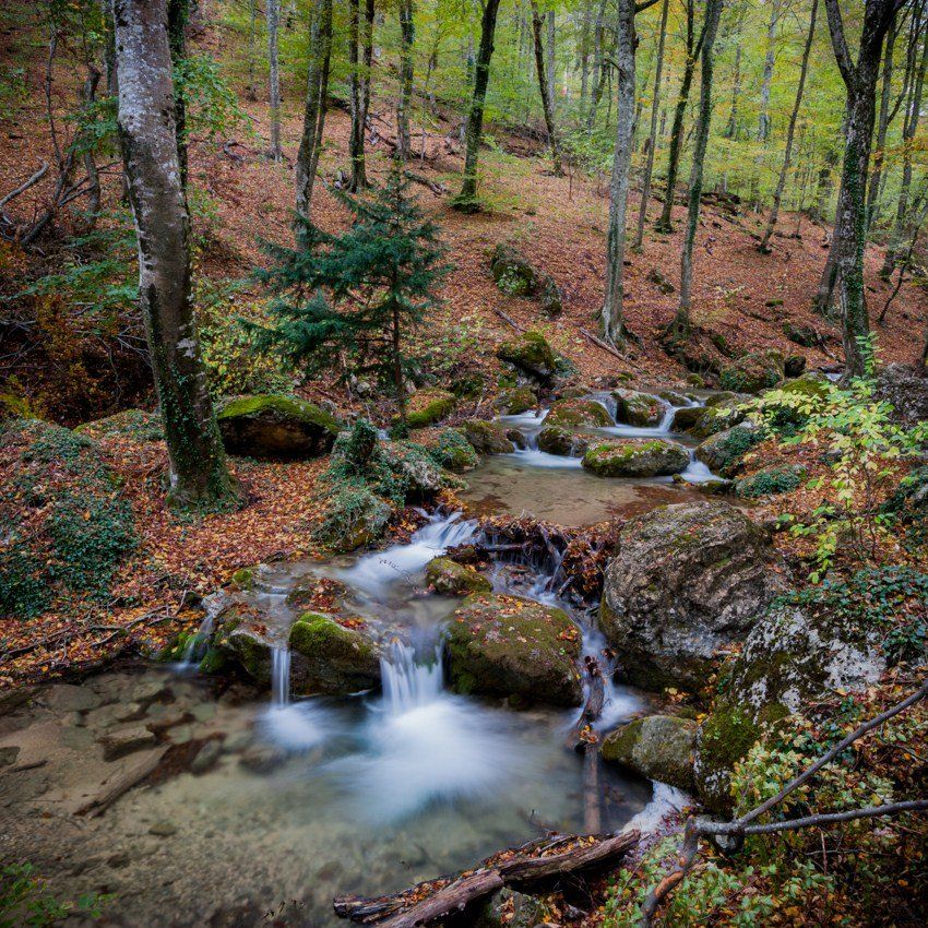 Такая версия была, но уж слишком диссонировала с зеленой листвой на деревьях. Поэтому решил оставить, как есть. Идеальное время для съемки в этом ущелье - через 2 недели после моей съемки - всё было бы в золоте...