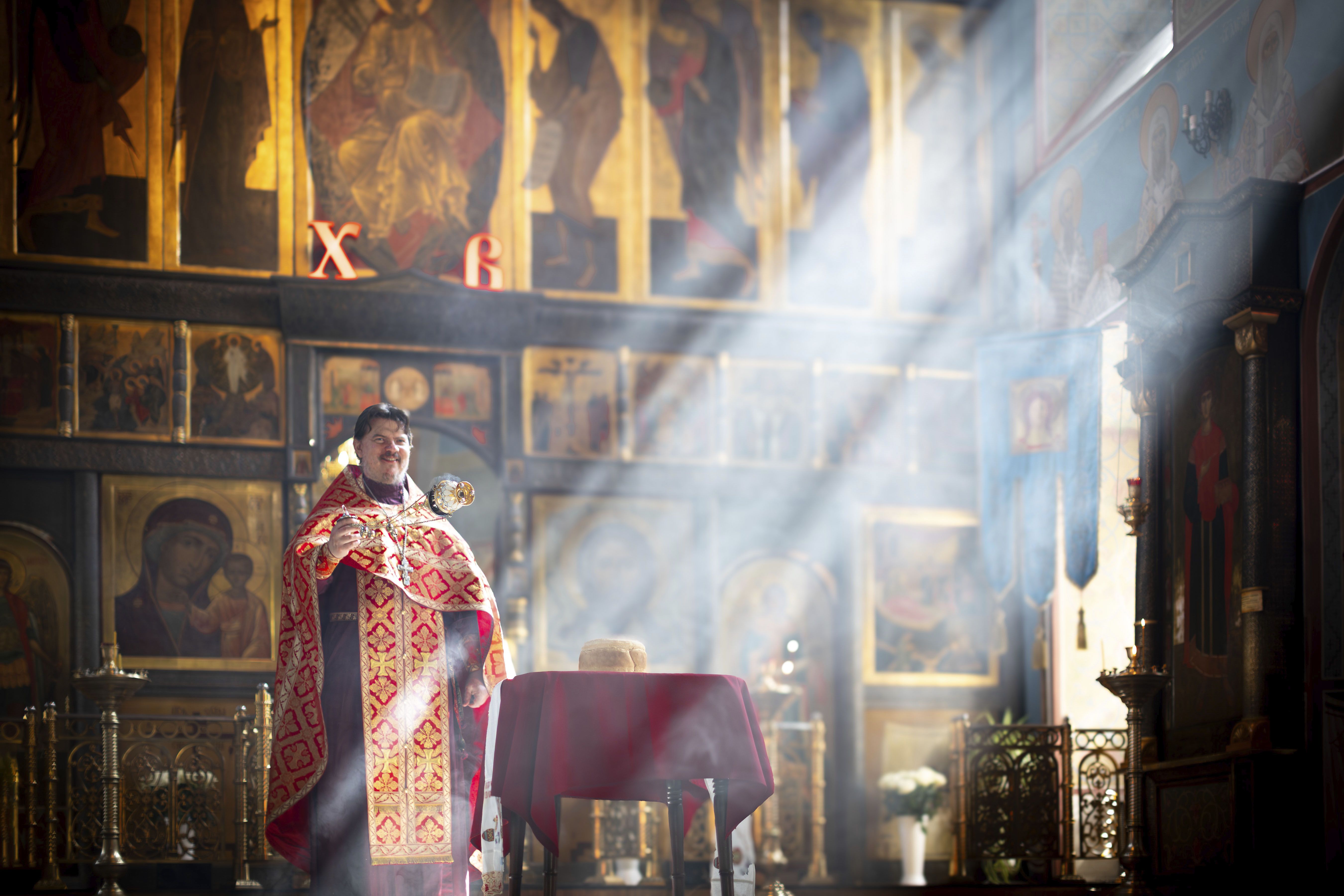 Съемка в Пасхальную Светлую седмицу, когда Артос находится перед Царскими вратами. Артос (по древней традиции) - хлеб, предназначенный для Бога. По окончании Светлой седмицы он дробится и раздается верующим, для вкушения в течении всего года.
