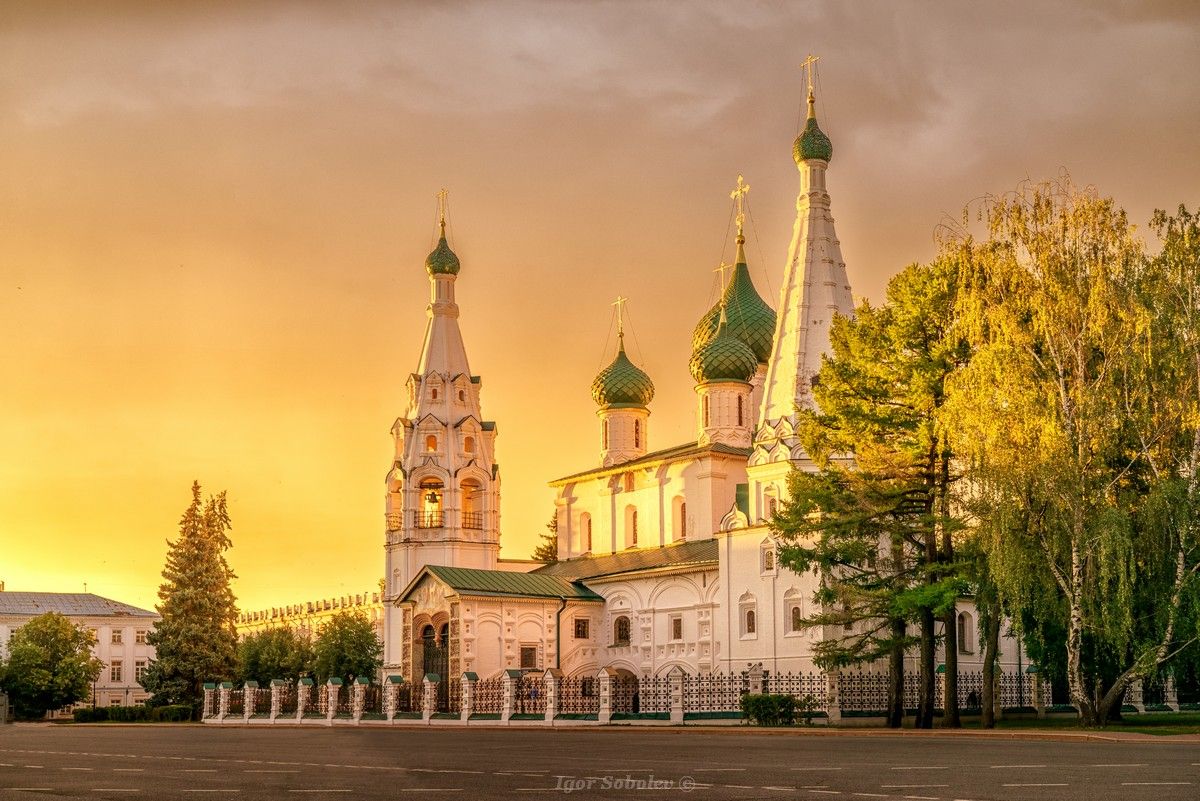 Грибной дождик на закате. Церковь Ильи Пророка в Ярославле.