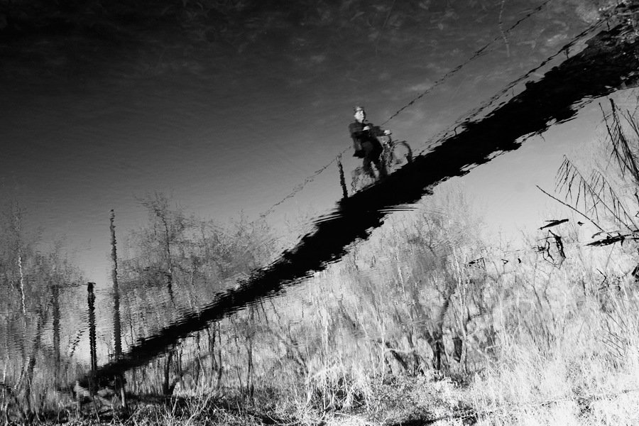 Какой тонкий баланс, а? Кажется, вот-вот диагональ, как качели, наклонится вправо и велосипед съедет без труда.