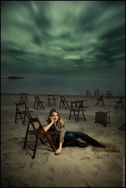 девушка, пляж, облака, стулья, Данилкин Геннадий