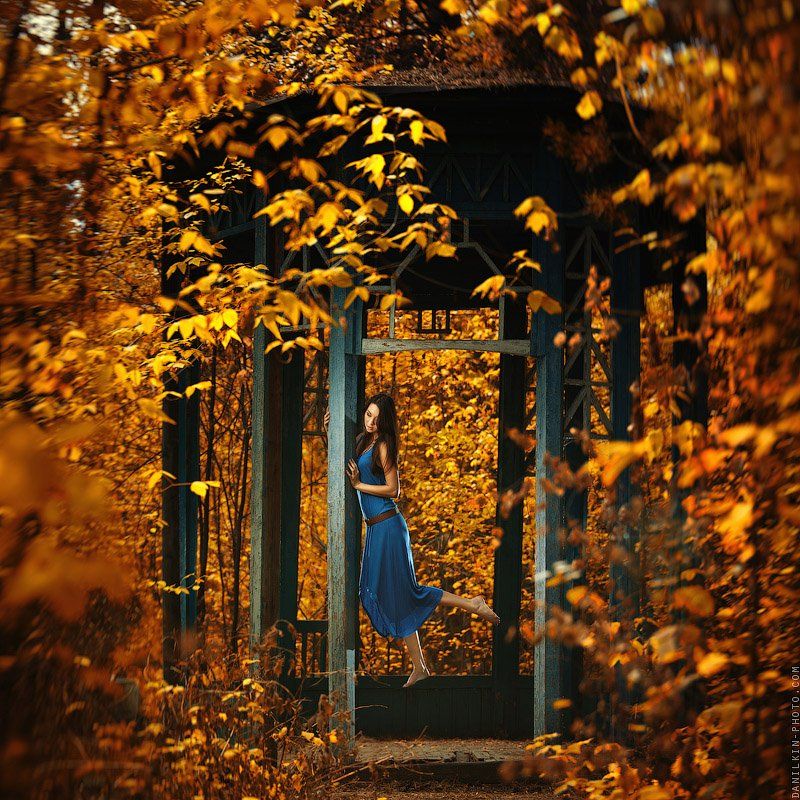 девушка, осень, ливитация, полет, беседка, стробизм, Данилкин Геннадий