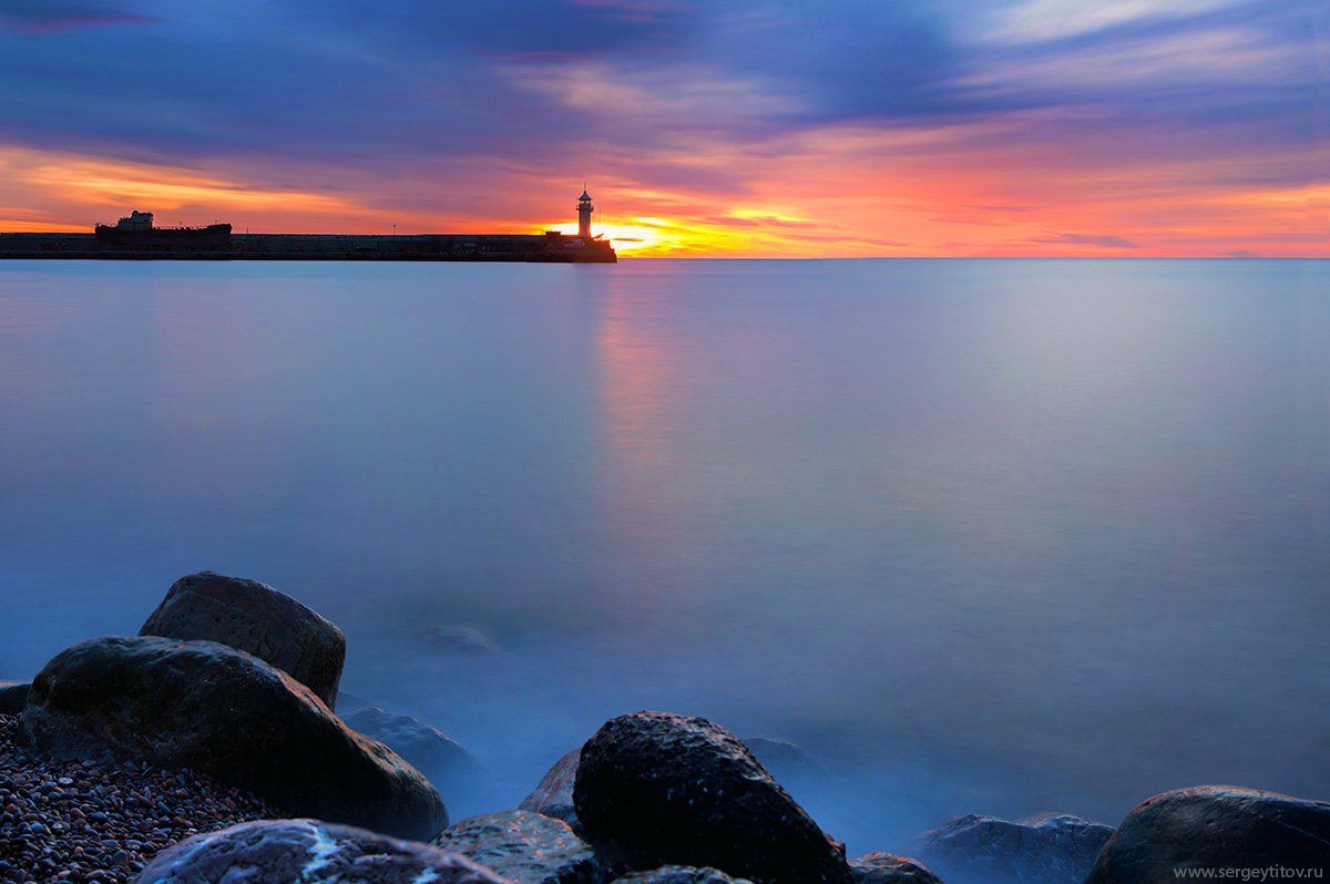 крым, ялта, пляж, волна, фотограф крым, фотограф ялта, маяк, навигация, ялтинский маяк, шторм, длинная выдержка, крымские пейзажи, Serge Titov