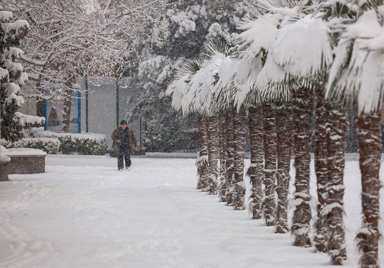 ялта, зима в ялте, снег в ялте, новый год, крым, набережная, пейзажи крыма, набережная ленина, пальмы в снегу, Serge Titov