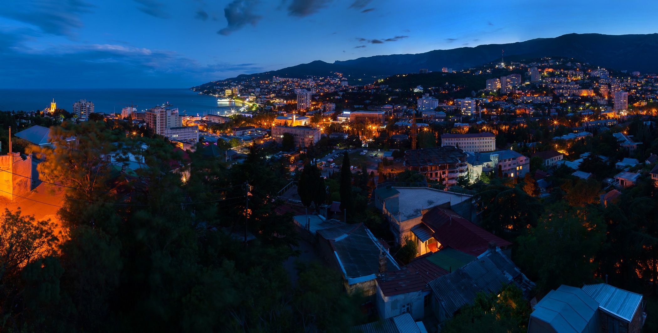 ялта, крым, вечер в ялте, пейзажи крыма, ай-петри, ялтинский залив, черное море, ялтинский маяк, Serge Titov