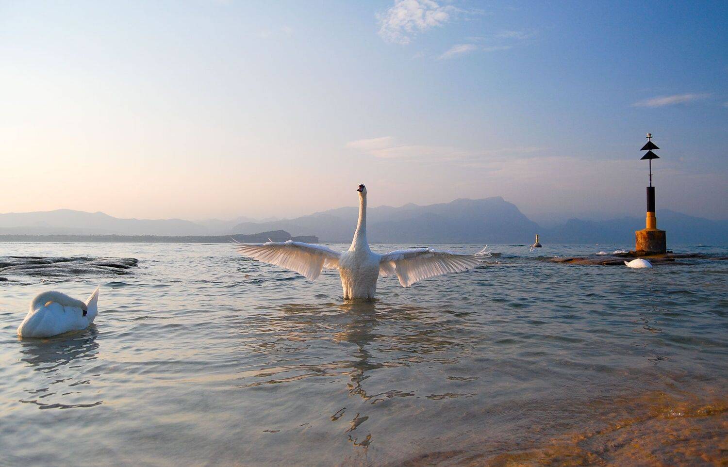 Лебеди на озеро Гарда