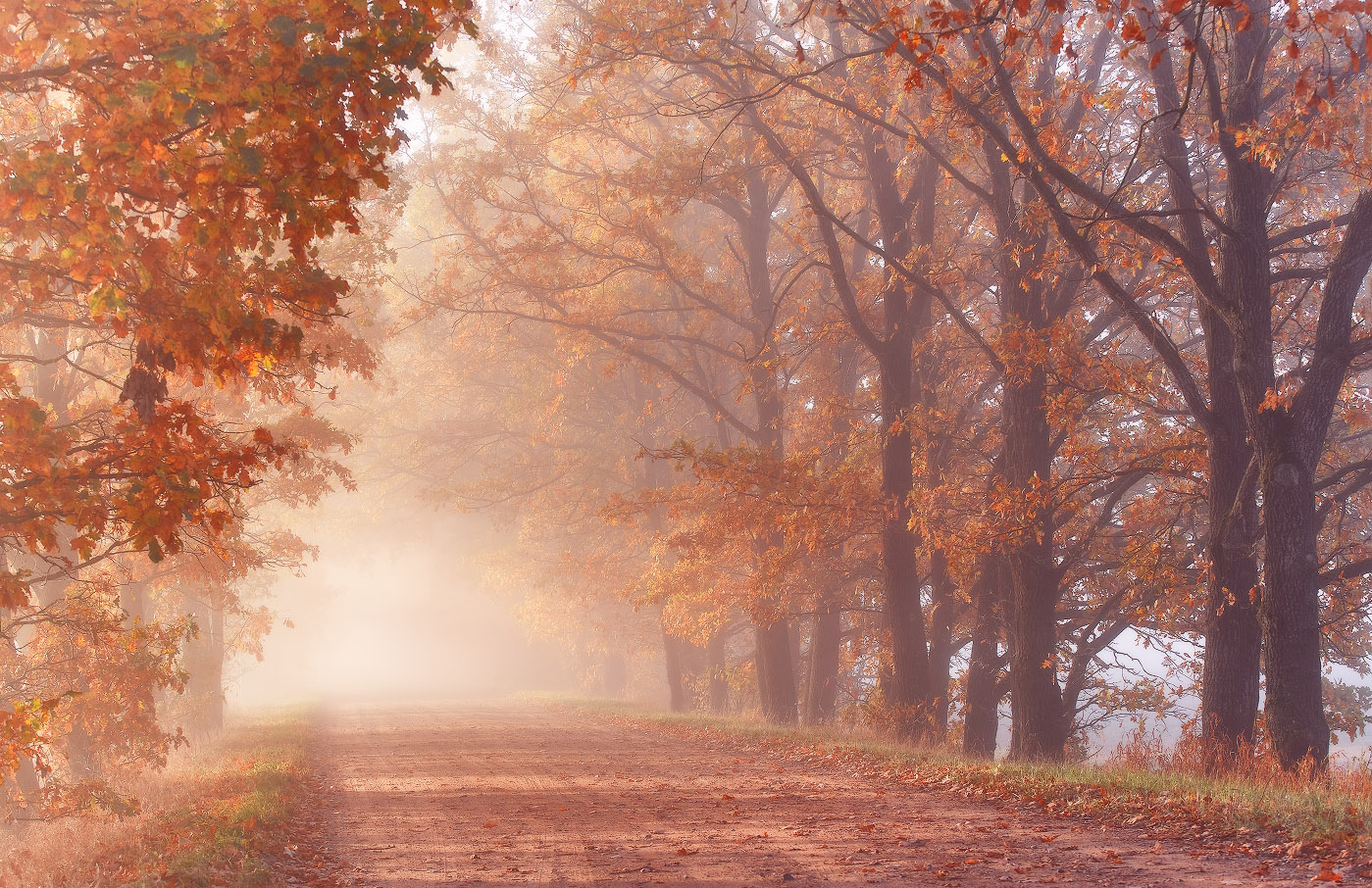 беларусь, дорога, дубрава, дубы, минск и окрестности, октябрь, осень, туман, утро, Вейзе Максим