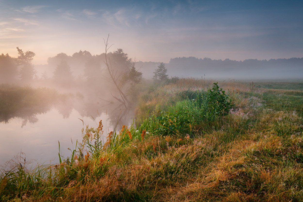 Беларусь, Лето, Июль, Рассвет, Туман, Река, Вейзе Максим