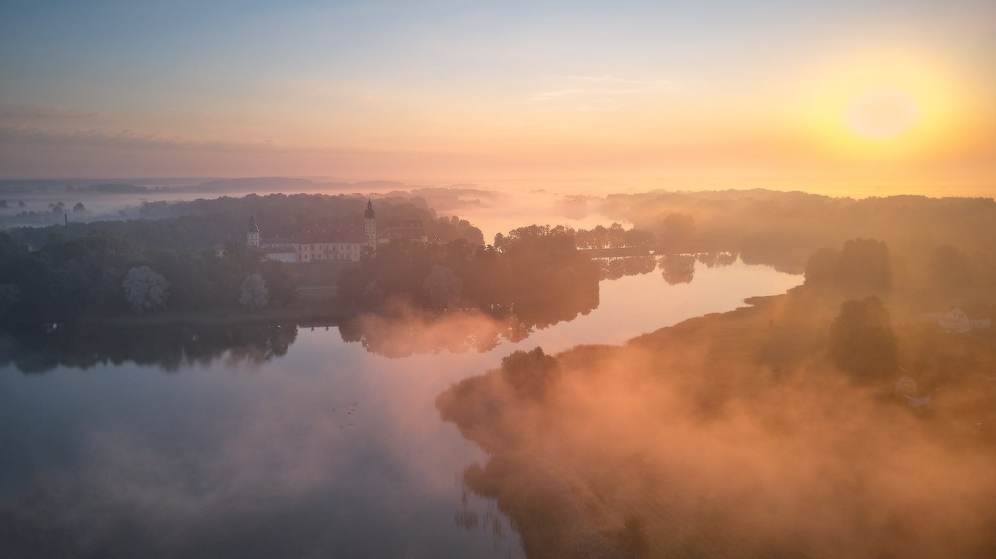 беларусь, замки, июль, лето, несвиж, озеро, рассвет, туман, утро, Вейзе Максим