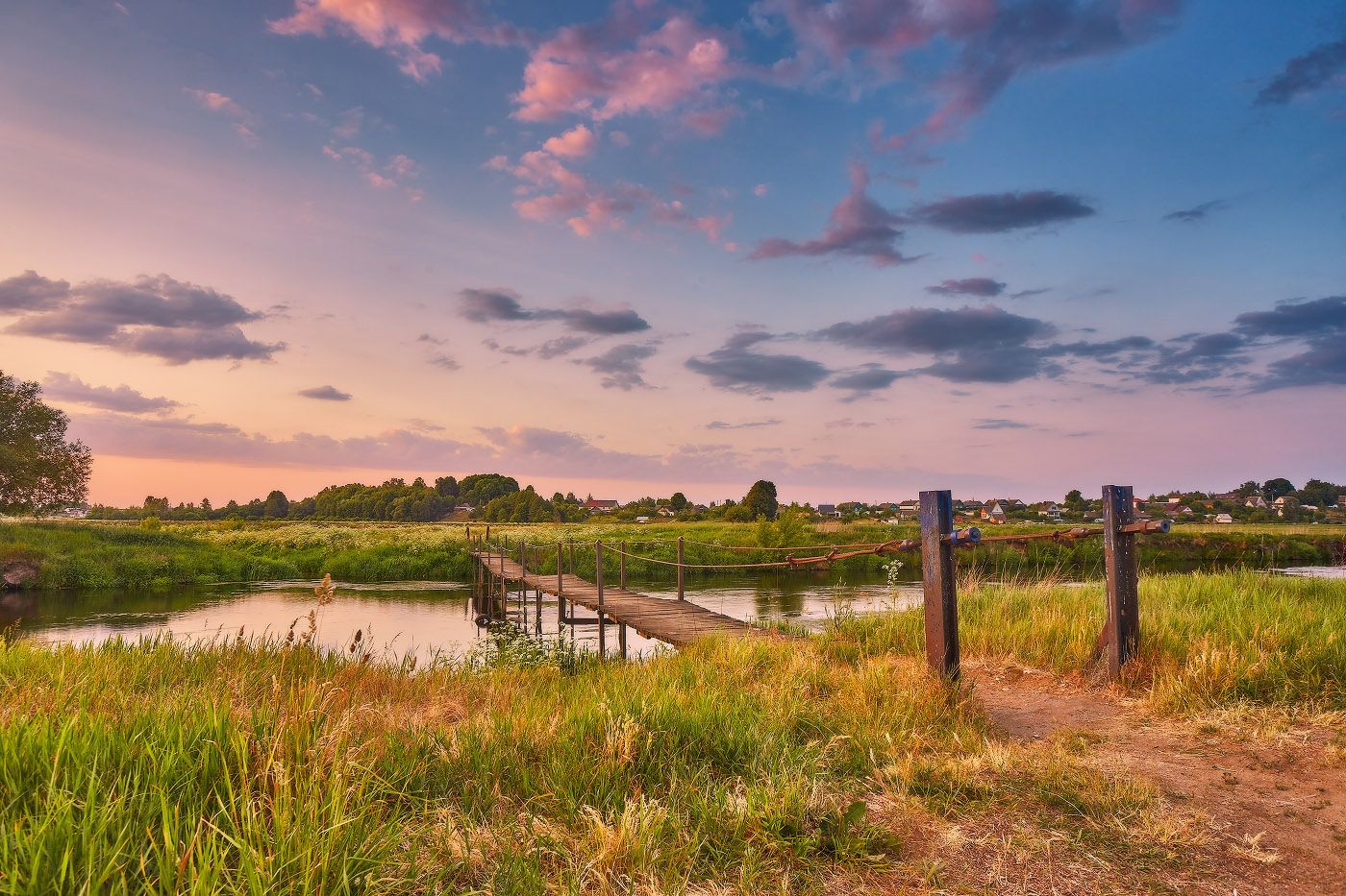 беларусь, вечер, закат, июнь, лето, мост, облака, поля, река, свислочь, Вейзе Максим