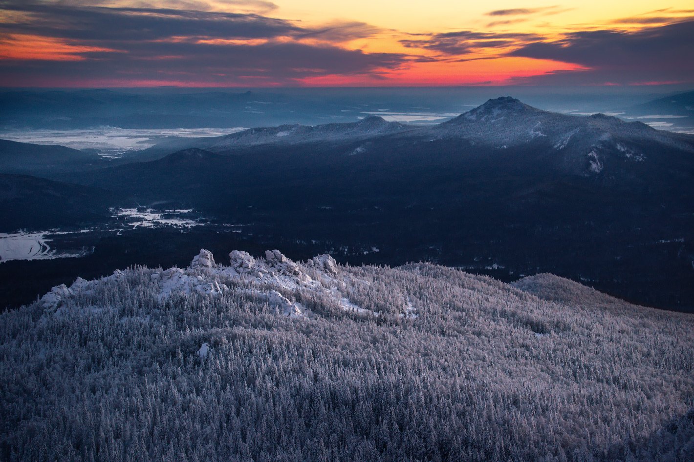 Горы, Закат, Зима, Снег, Урал, Ялангас, Владимир Ляпин