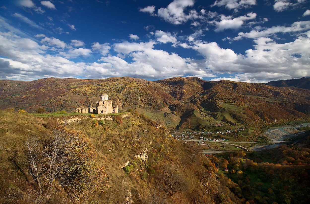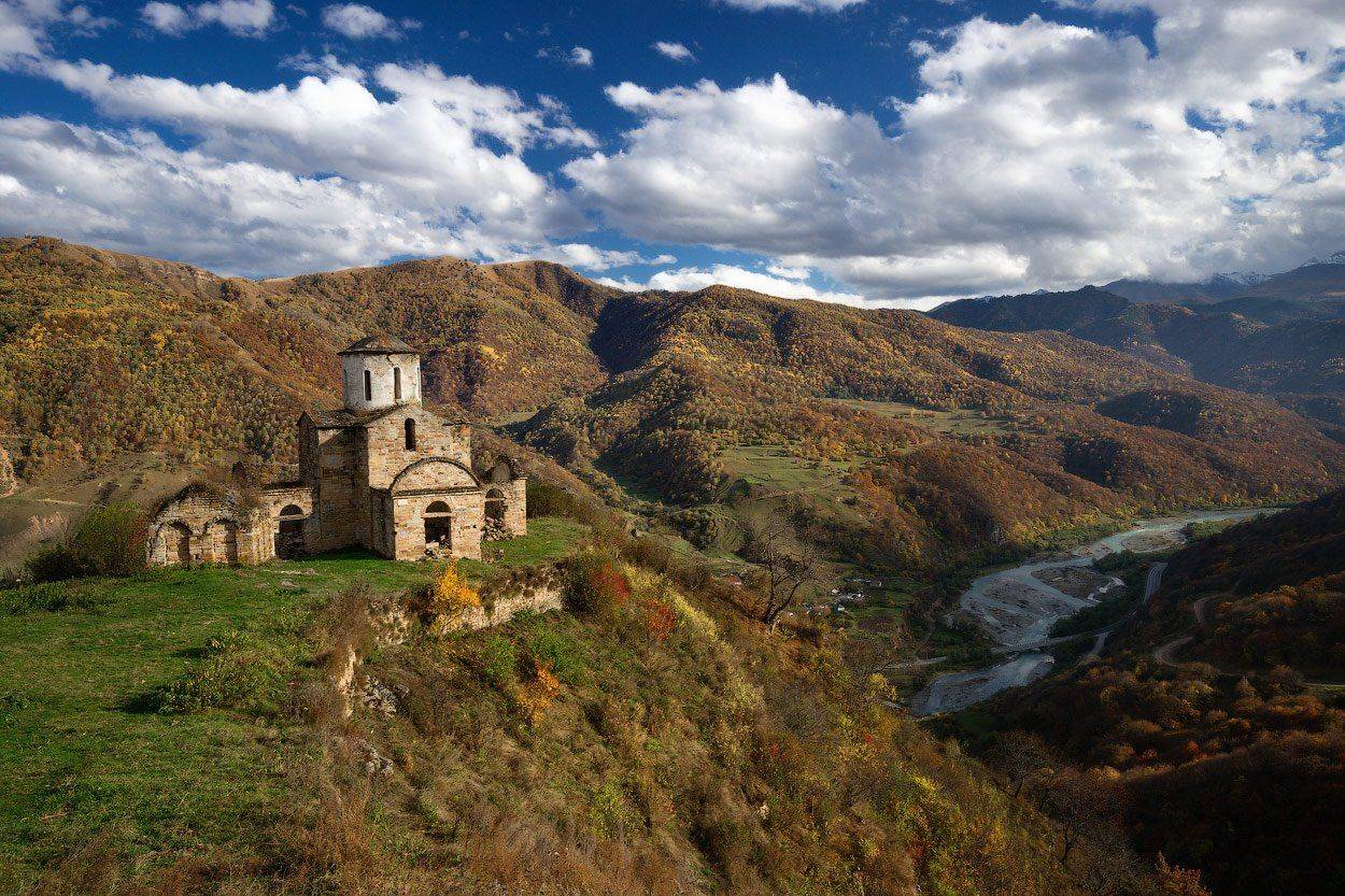 Здание сложено из блоков песчаника на известковом растворе. На стенах сохранились следы фресок XI века. Со стороны храма открывается живописный панорамный вид на Нижнюю Теберду и горные массивы Домбая.