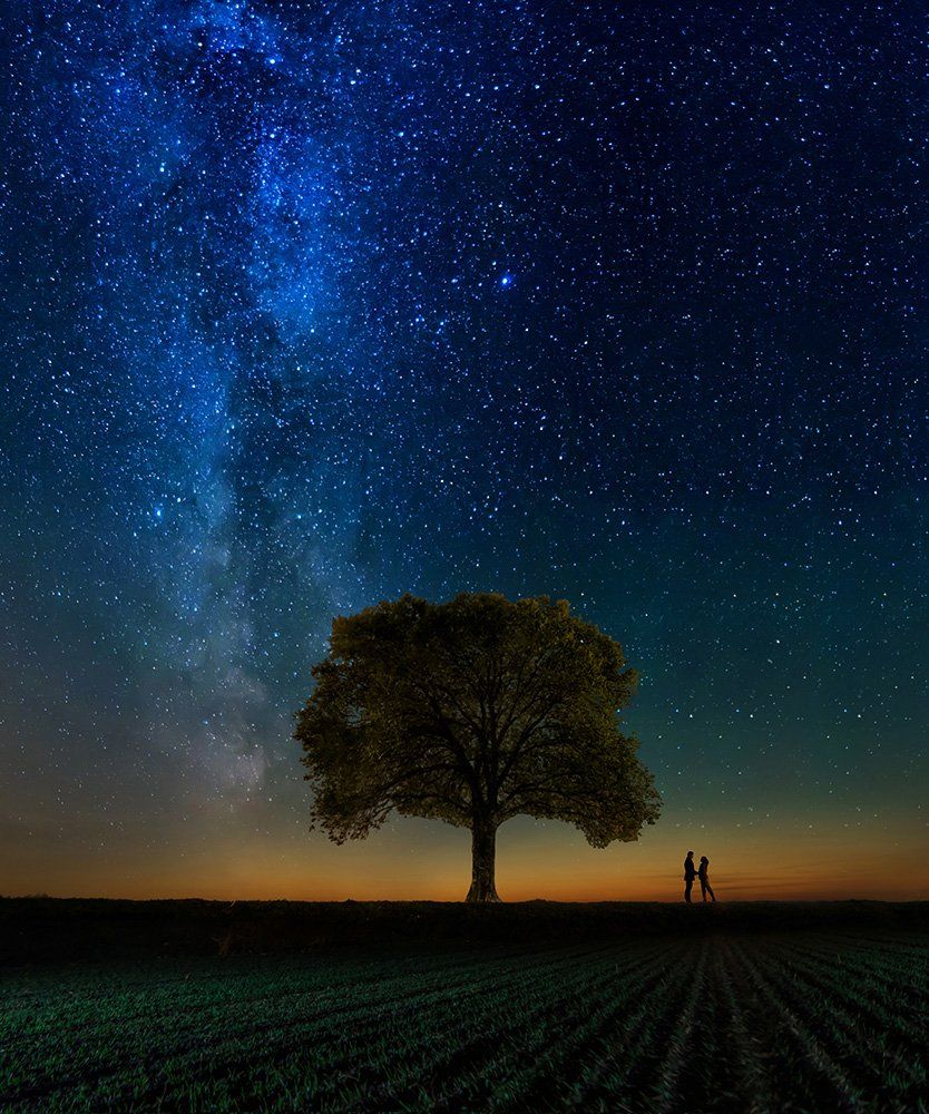 Галактика, Дерево, Закат, Звезды, Млечный путь, Пара, Перспектива, Романтика, Сказка, Александр Жосан