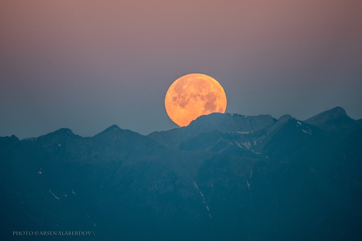 долина, утро, вечер, карачаево-черкесия, кавказ, простор, закат, дымка, туман, горы, хребет, луна, полнолуние, закат, Арсен Алабердов