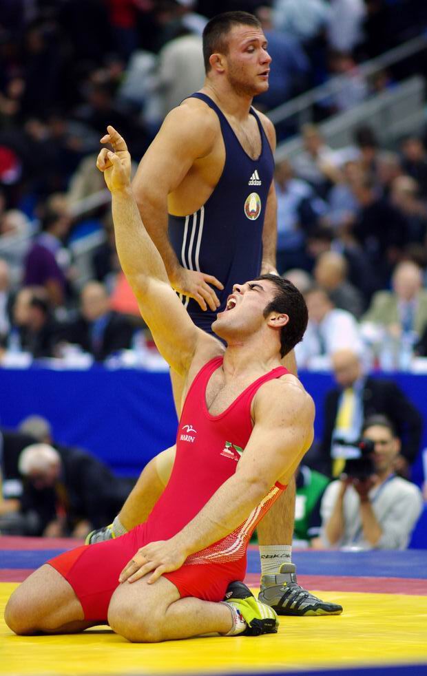 фотография сделана на чемпионате мира по борьбе,проходившем в Москве в 2010г. на кадре запечатлено ликование иранского борца выигравшего в финале у спортсмена из Белоруссии.