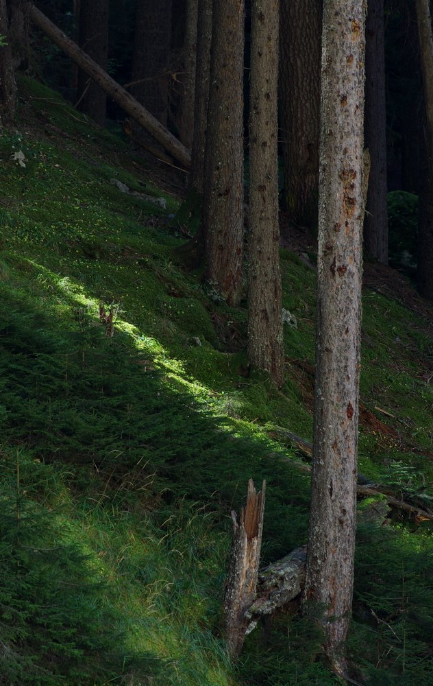 Спасибо Вика! а листиков нет потому что лес хвойный.. стоял на краю обрыва с речкой внизу- и увидел на противоположном краю ущелья вот такой лучик в чащобе.. а листики еще будут..)