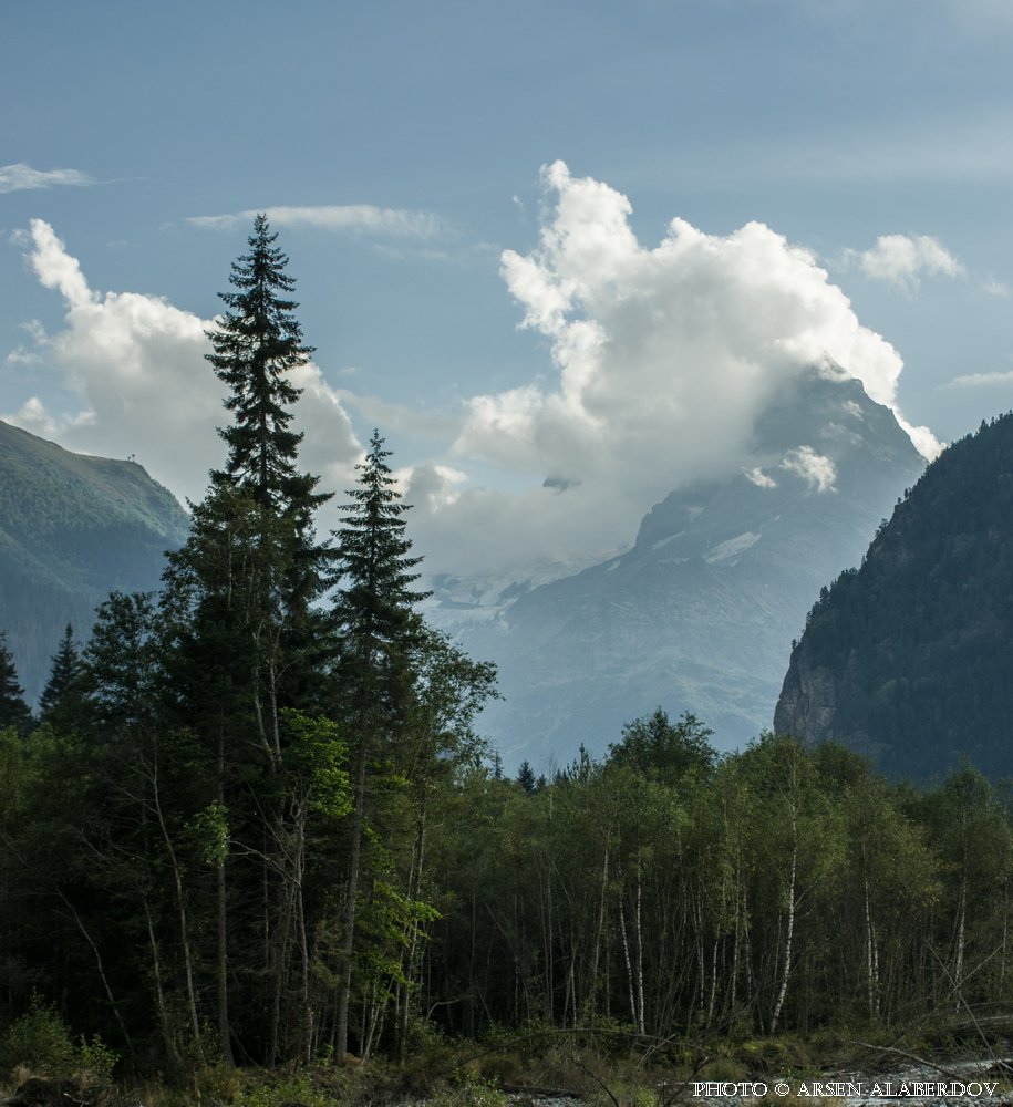 ГОРНЫЕ ВЕРШИНЫ, Горы, Домбай, Карачаево-Черкесия, Лес, Облака, Пик, Северный Кавказ, Арсен Алабердов