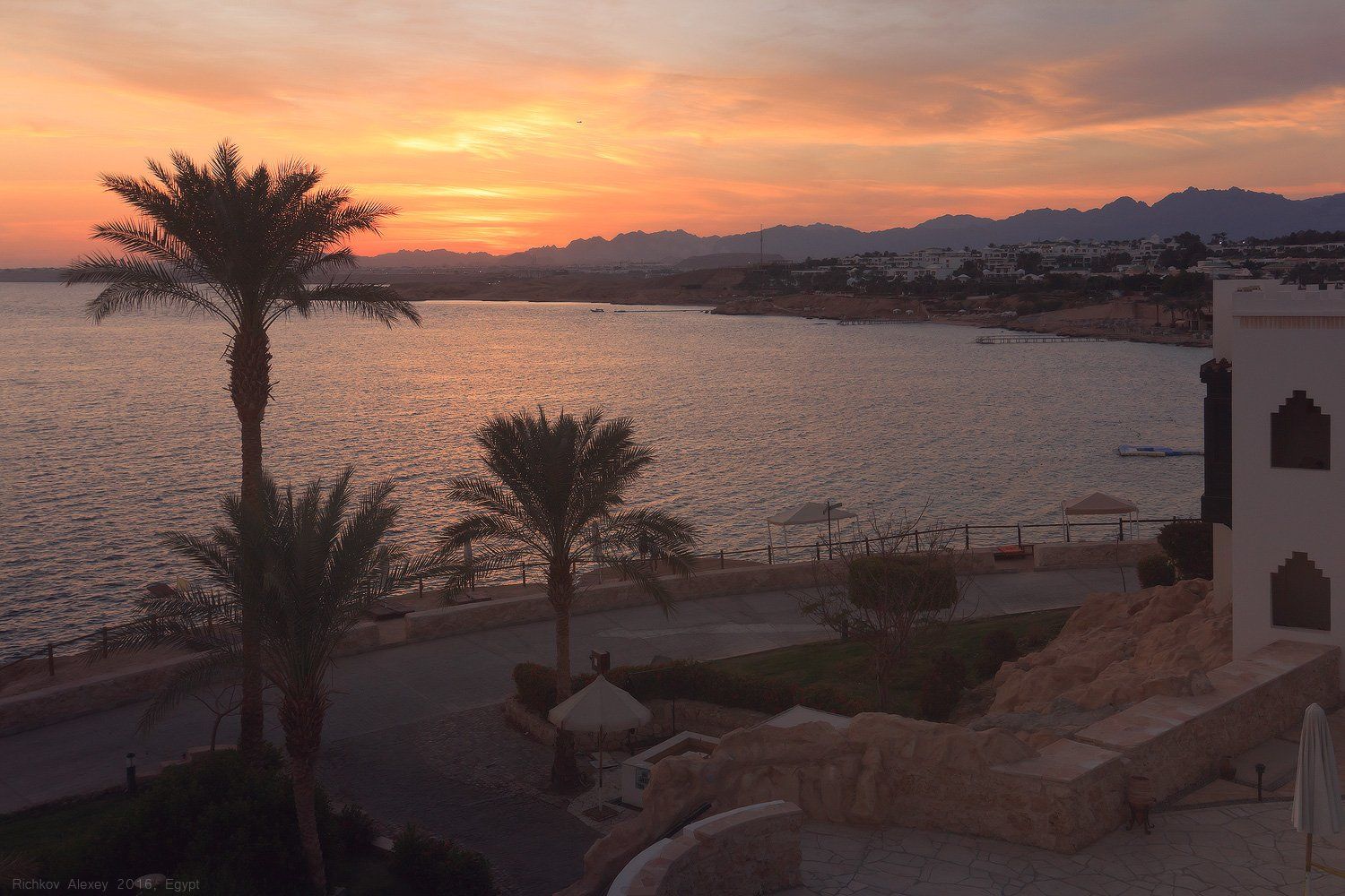 египет, Шармальшейх, пальмы, море, вечер, закат, берег, отель, Рычков Алексей