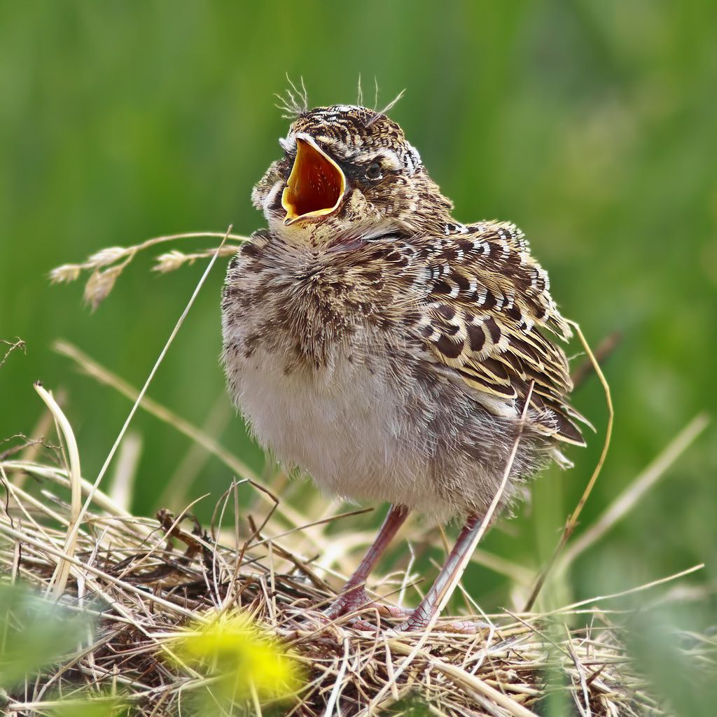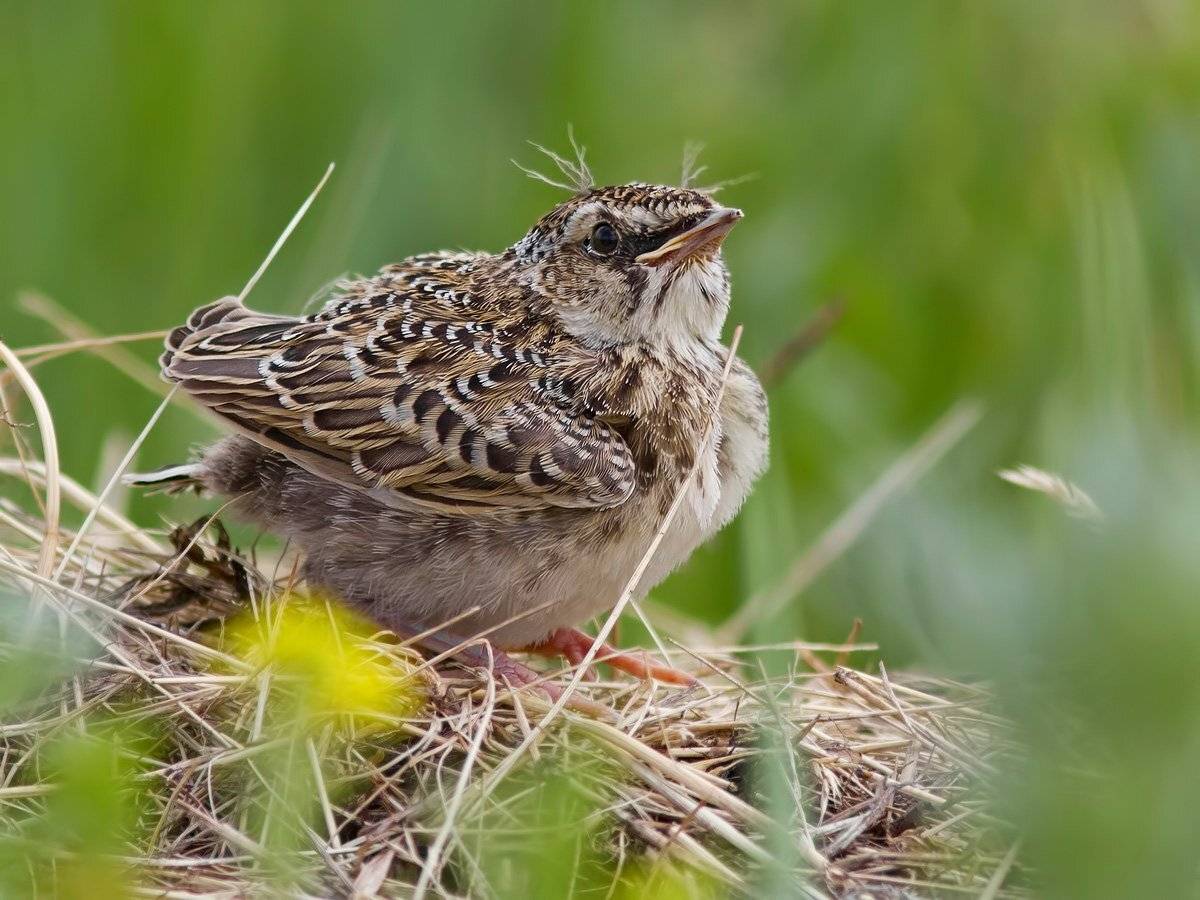 птенец полевого жаворонка в ожидании мамы