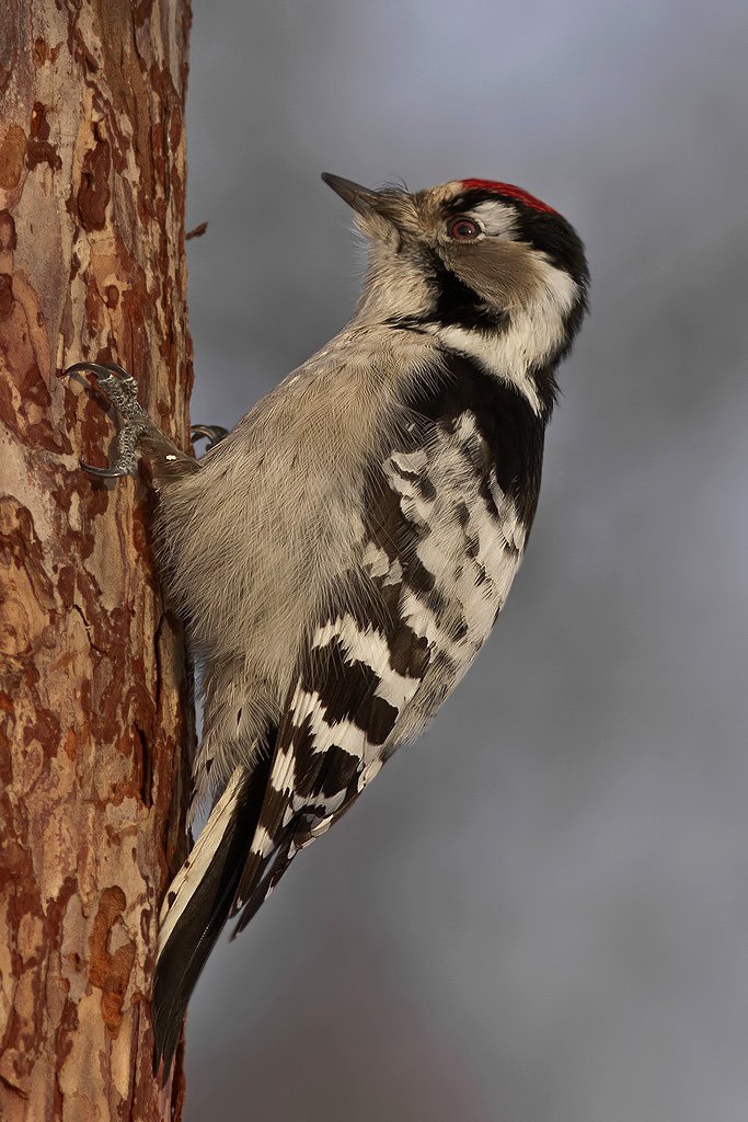 Малый пестрый дятел — одна из самых милых лесных птичек. Ростом он немного больше воробья, более короткохвостый и большеголовый, чем другие наши дятлы.