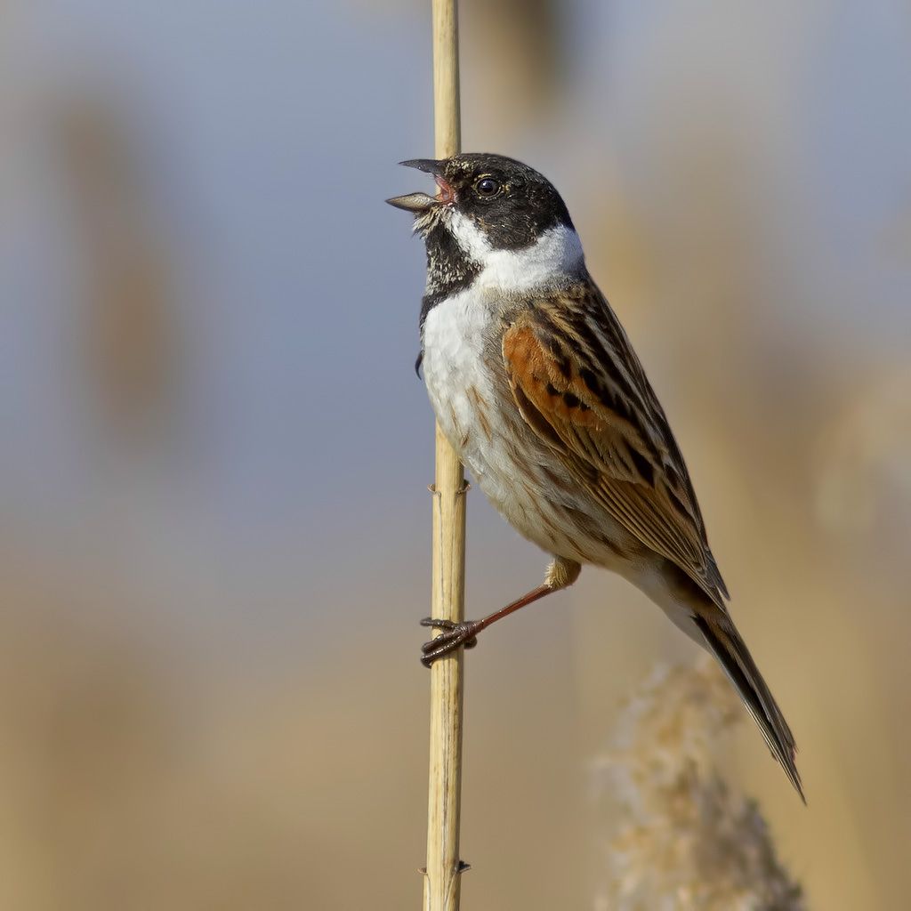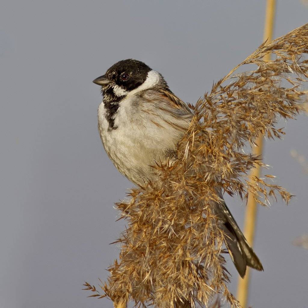 Камышовая овсянка.Гнездится на болотах, озёрах, прудах, реках, каналах, заболоченных лугах, где занимает открытые участки или берега водоёмов в непосредственной близости от воды. Предпочитает различные участки с зарослями тростника или кустарников