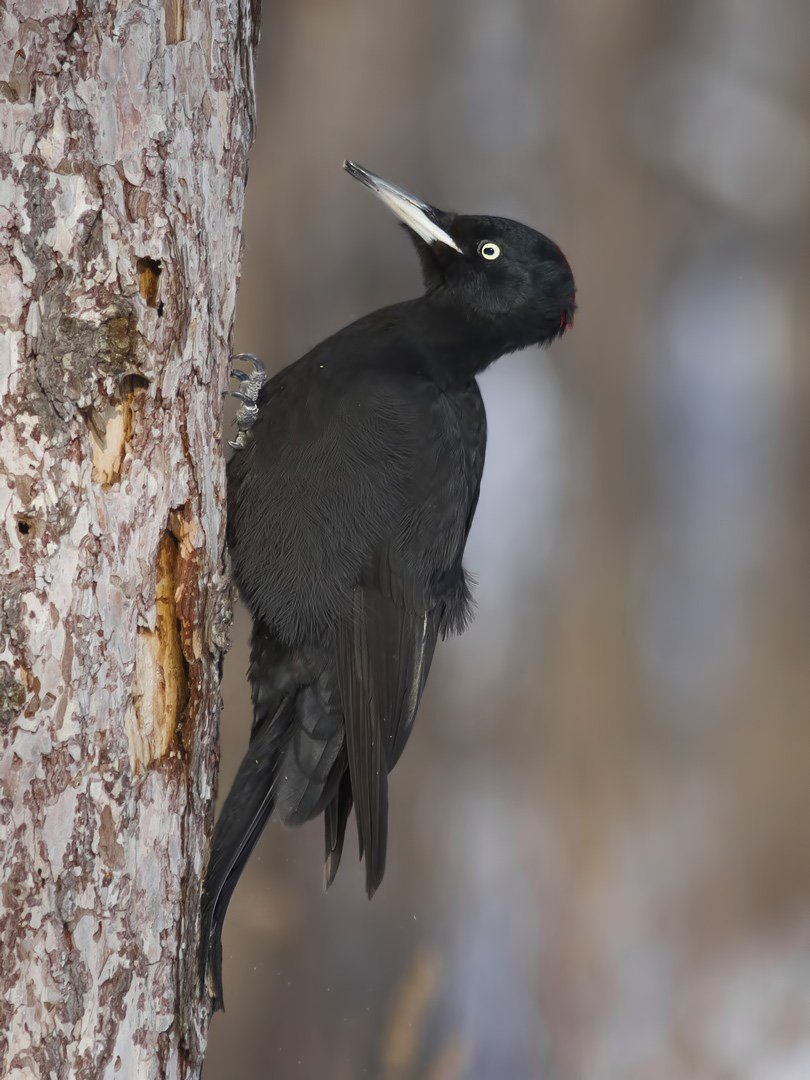 Желна — самый крупный из европейских дятлов. Оперение полностью чёрное, хорошо контрастирующее с красным верхом головы у самцов и красным затылком у самок.
