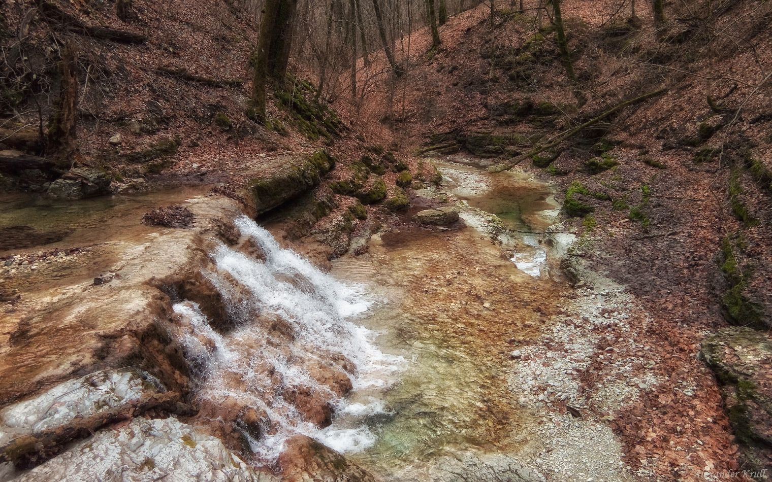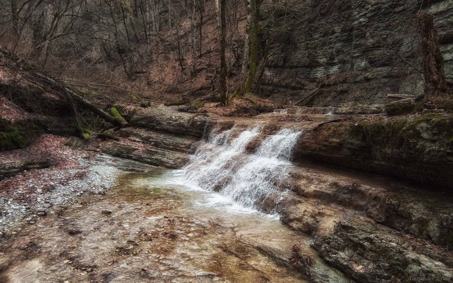 Начало марта в предгорьях Краснодарского края, полная родниковых вод речка Каменистая, приток р. Джубга.