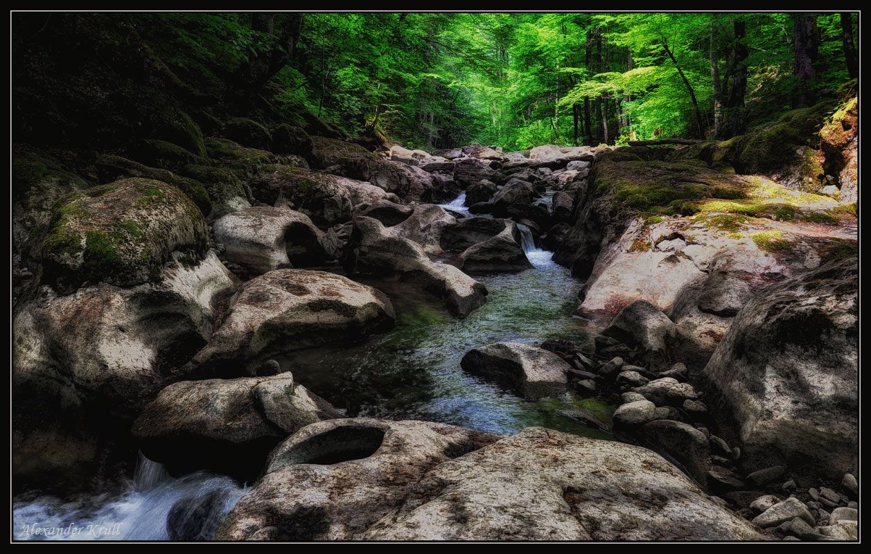 Этот каменистый участок длиной всего около 150 метров. Оканчивается серией красивых водопадов (ранее размещал их) и каскадов. А так выше и ниже по течению обычная лесная речка... Спасибо вам, Владимир!