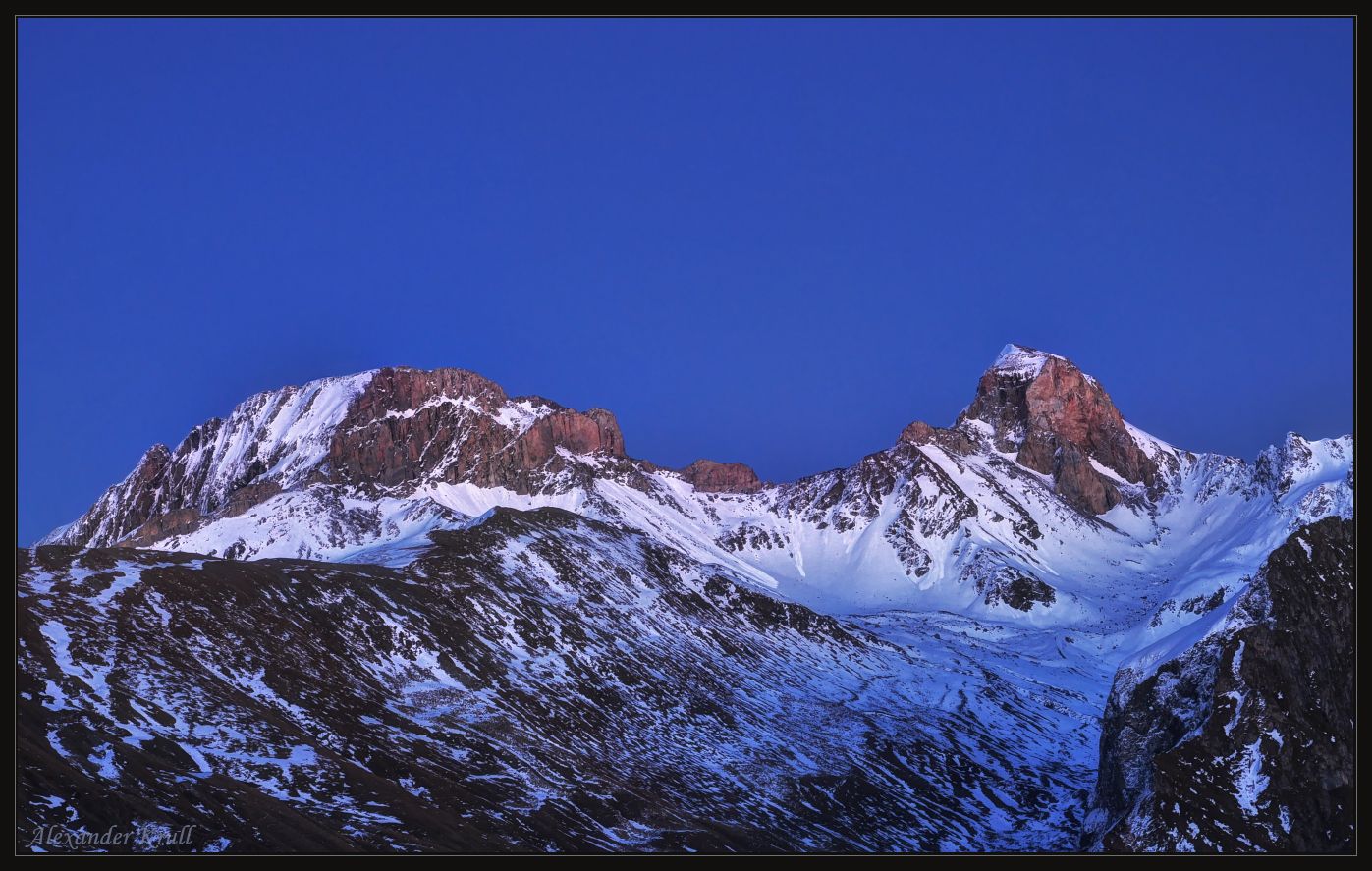 Карачаево-Черкессия, октябрь. Нет ничего красивее вечера в горах. В этом я твёрдо убеждён! Где ещё за каких-нибудь 30-40 минут можно увидеть чудесные превращения света почти во всём его спектре... Такой вот картиной я любовался с г. Чистоган в направлении вершин Загедан-скала и Седая.
