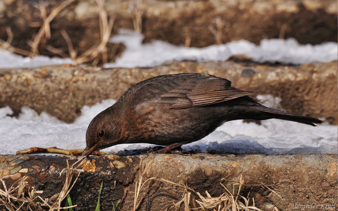 Она бегала и хлопотала, разгребая клювом листву. А он поглядывал на неё метров с 10-15. Предполагая приятное знакомство он решил привести себя в порядок. Встреча закончилась скоротечной драчкой и он был изгнан с этой территории. Но это осталось за кадром по простой причине - я не успел среагировать за эти 3-4 секунды.