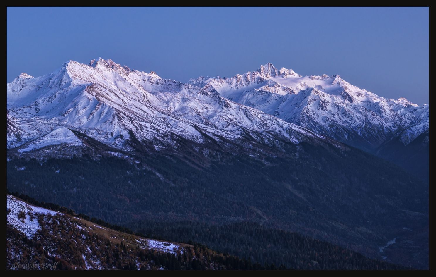 Карачаево-Черкессия, октябрь. Вид с г. Чистоган в сторону притока Большой Лабы - р. Санчаро.