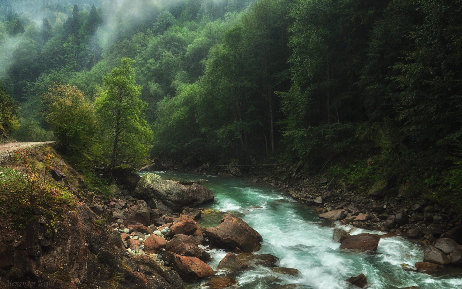 Пасмурно, свет рассеянный, бирюза превратилась в изумруд. Эти места любят рафтеры.