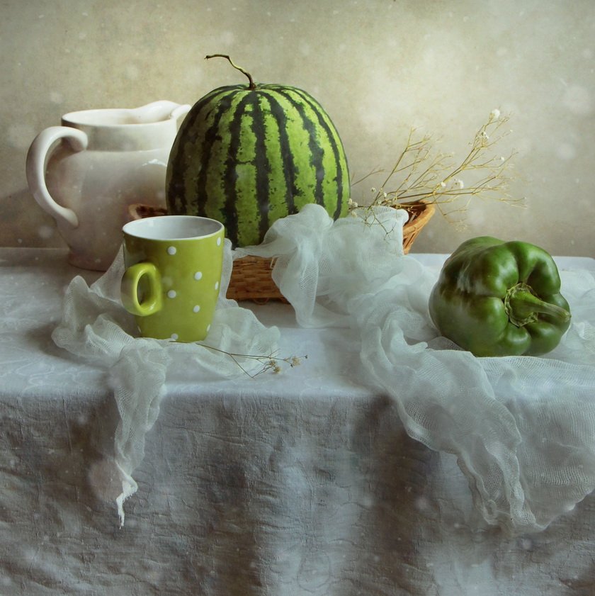 Следующий экспонат нашего музея. "Натюрморт с арбузом" Посмотрите, как автор передал, легкость и свежесть, которая буквально овевает нас зрителей! Как замечательно переданы краски, эта работа по праву считается гордостью нашей экспозиции - так или примерно так будут говорить про этот натюрморт в величайших музеях мира через 100 лет!