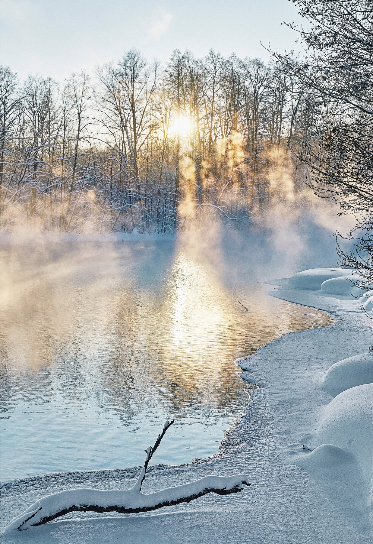 зимнее озеро, голубое озеро, зимний пейзаж, зима, закат, ранний закат зимой, солнечный свет, туман над рекой, Светлана Степанова