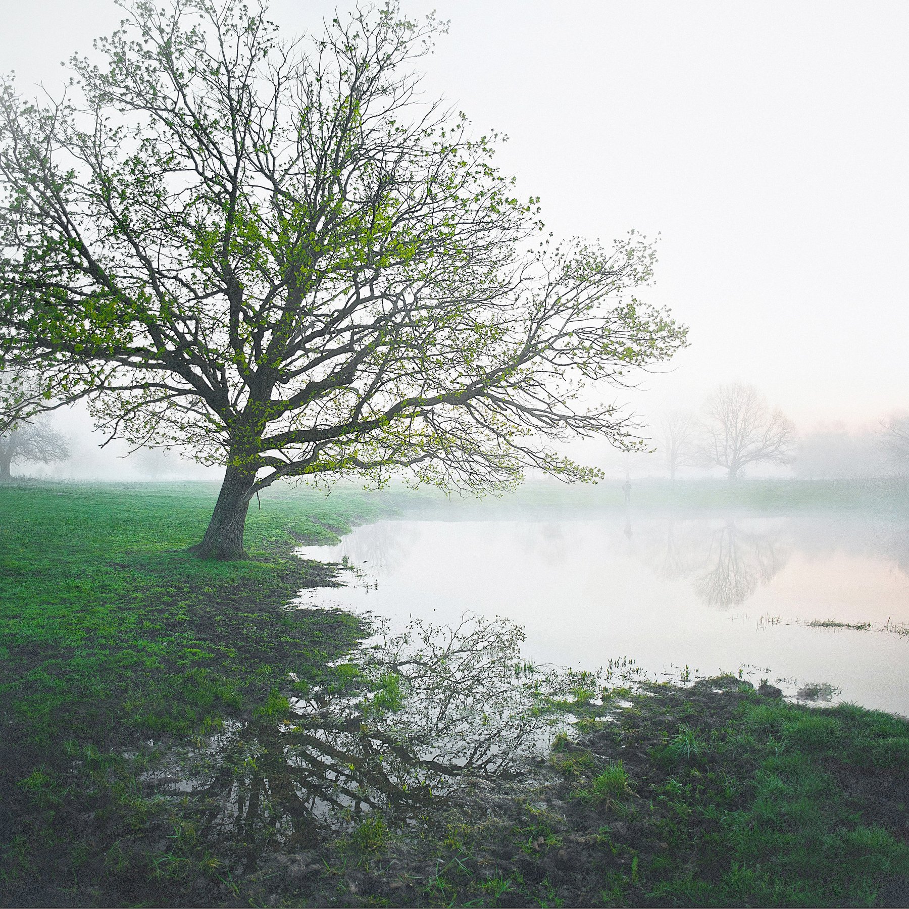 рассвет на озере, одинокий дуб, туманное утро, Светлана Степанова