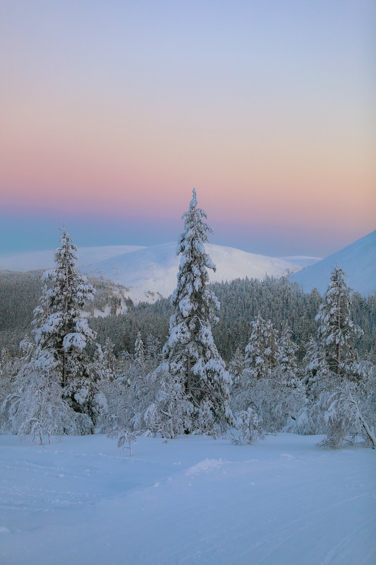 зима, снег, вечер, горы, лес, Александр Игнатьев