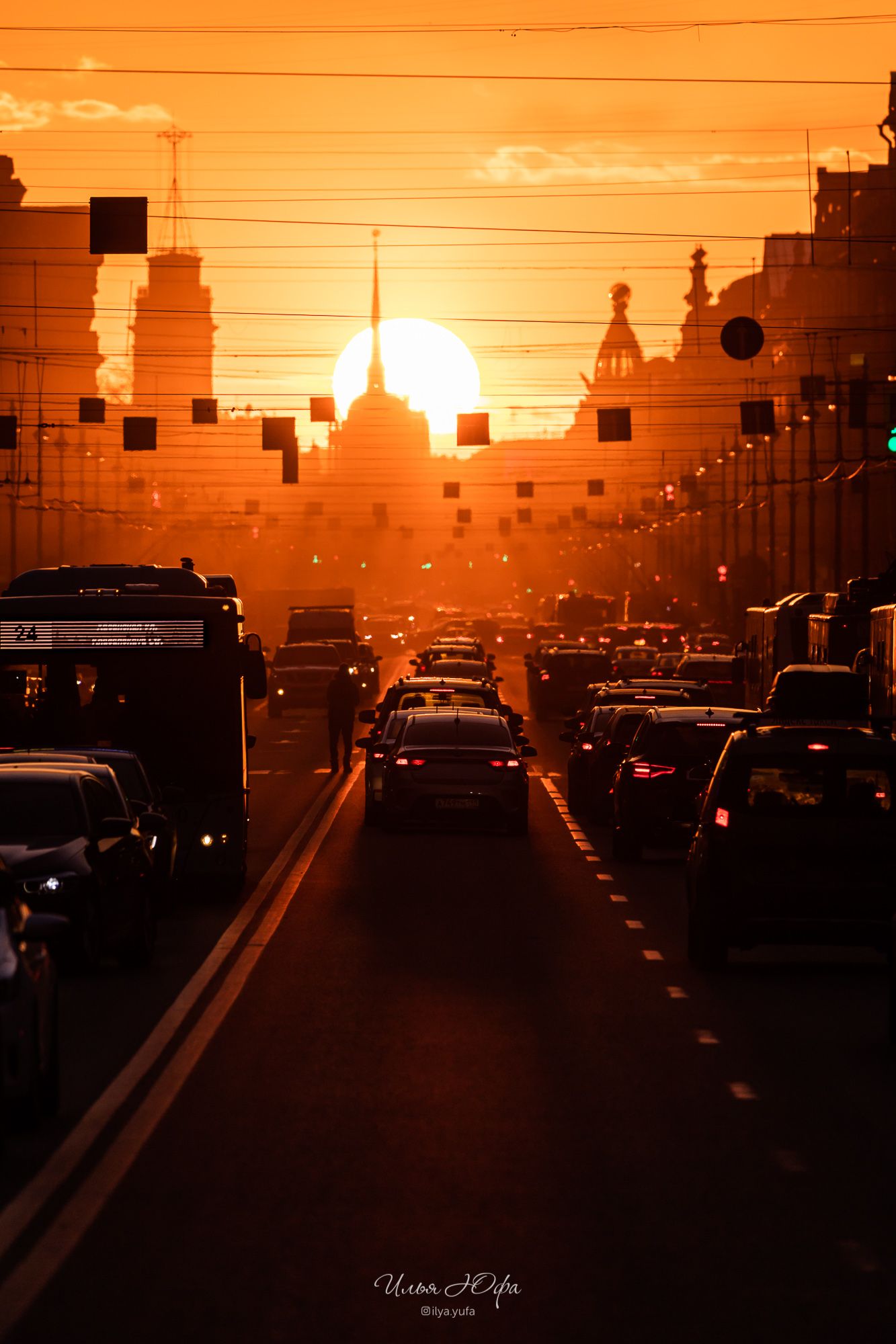 закат, Невский, Санкт-Петербург, город, улица, Илья Юфа
