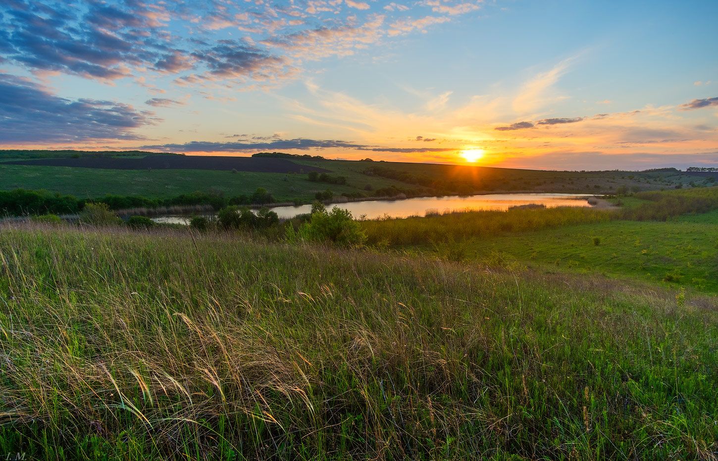 Конец апреля. Вечер у озера. Ветер пригибал к земле молодые и старые травы ... Свет то и дело менялся, а остатки тучек неспешно уходили на восток ...