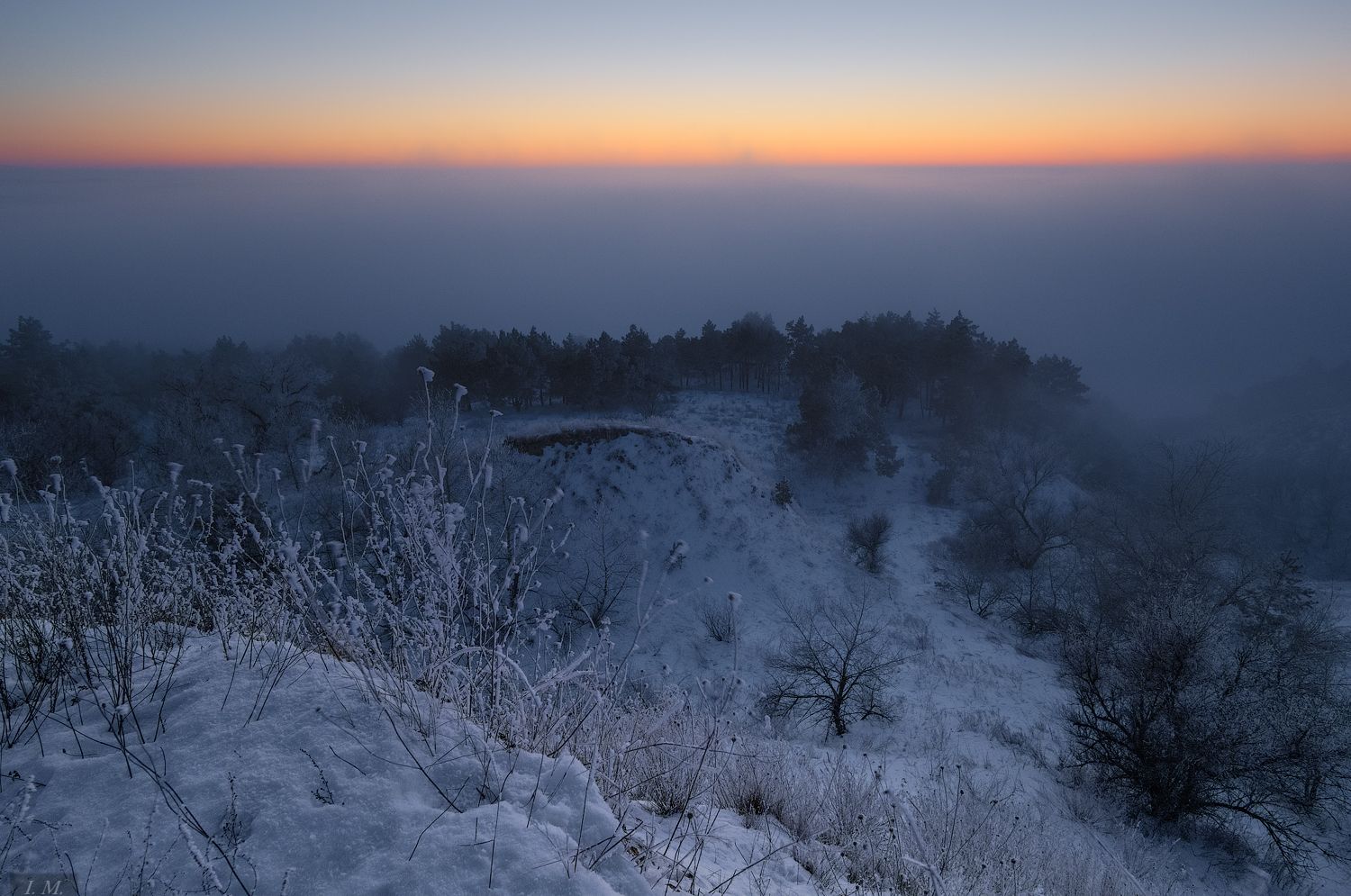 bluecoldeveningfoglandscapesnowwinterвечердеревьязимаинейпейзажснегсумеркитуманхолмыtreesmistycolorsviewfrosttwilightfoggyafter sunset