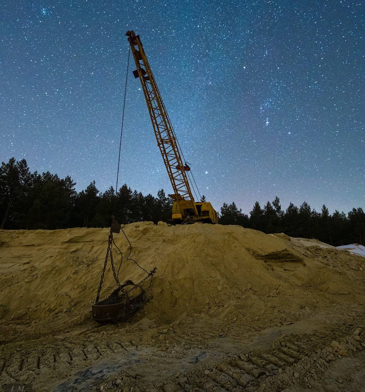 ночная съемказвездызодиакальный светорионсириусзимазаброшенный карьертехникаstarsnightminesorionsiriuswinterabandonedminerdigger