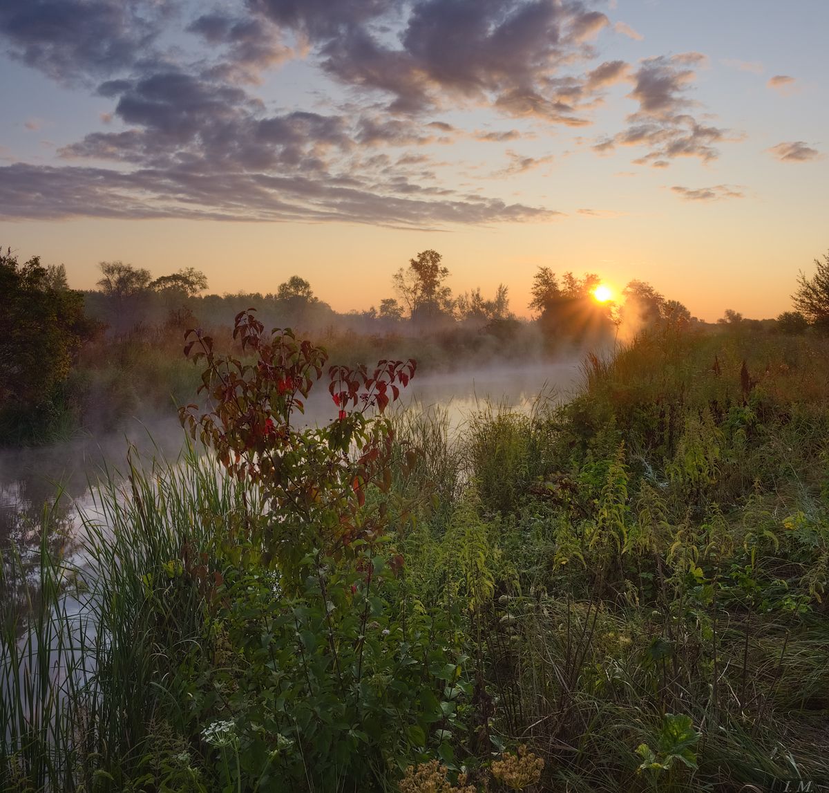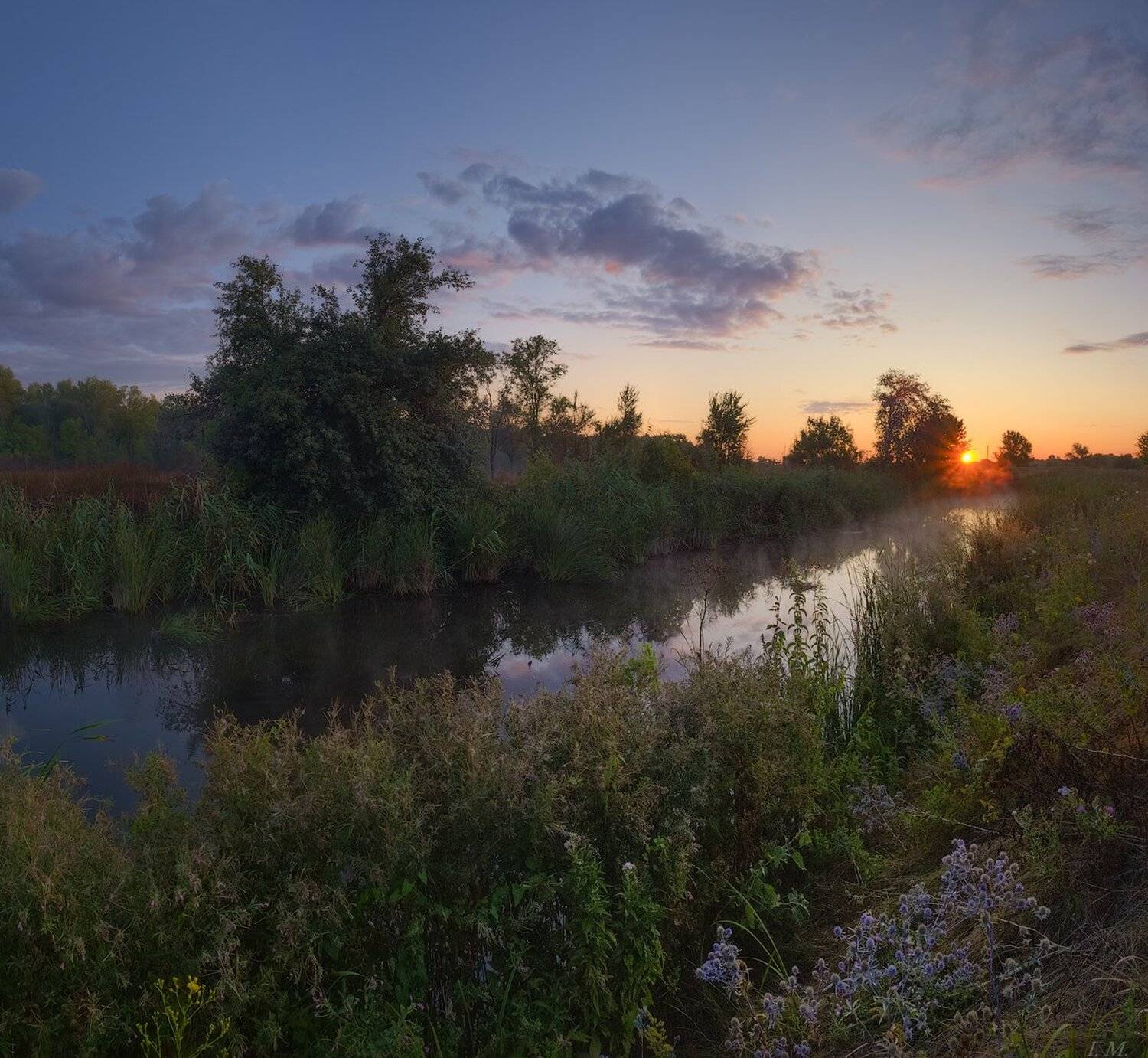 речкарассветутролетосолнцеоблакапейзажsunriselandscapesummersmall rivertreescountrysidemorningcolorssunlight