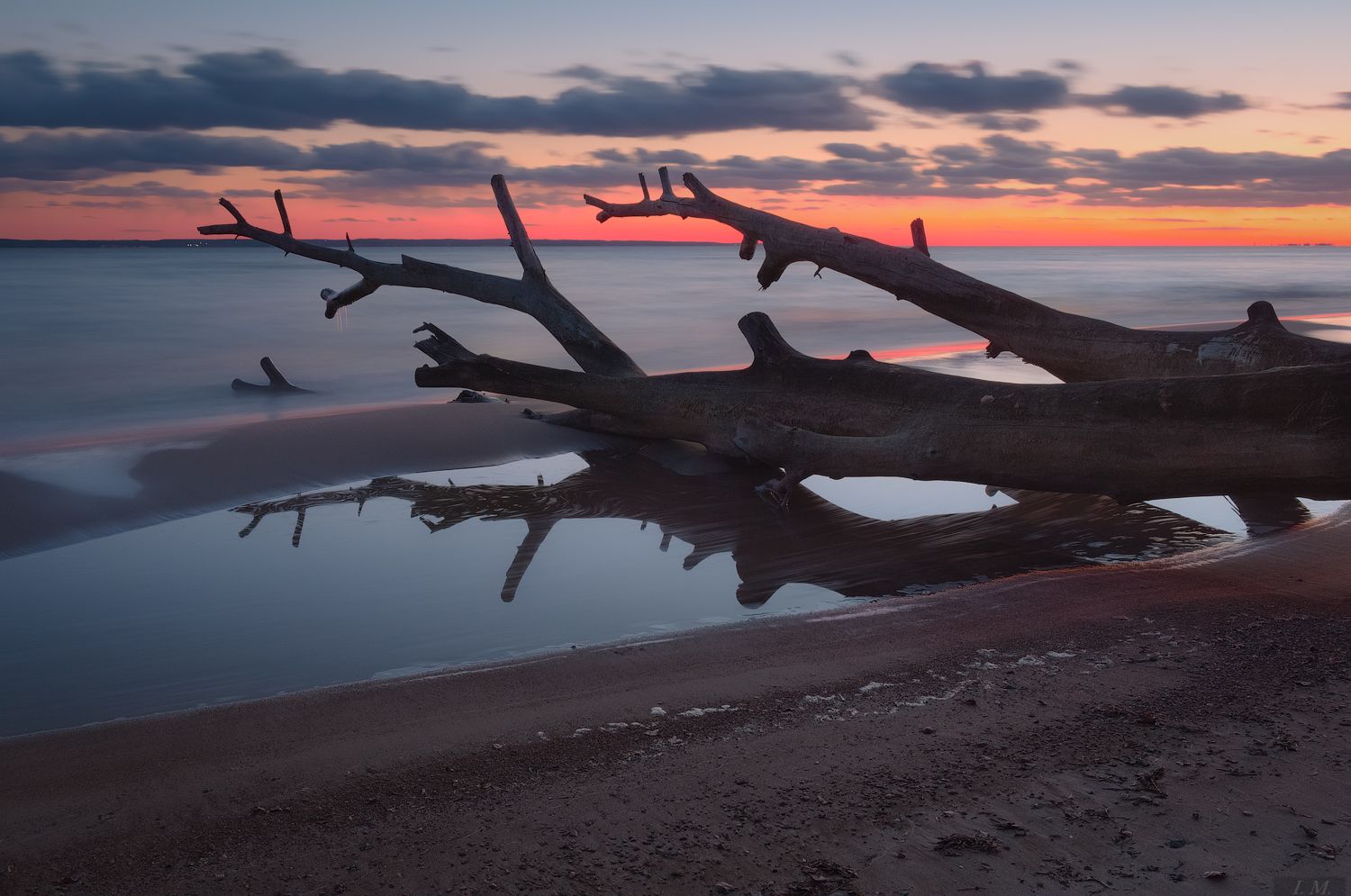 моревечерпейзажоблаказакатдеревокорягапесокприбойводаотражениядлинная выдержкаlandscapecloudsseawoodsandtreewavesreflectionsseascapesunsetcolorslong exposurewide anglemarinesketches