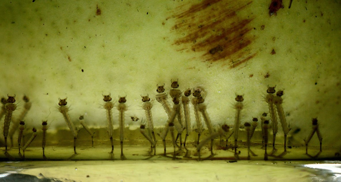 Аквариум в саду, дождь, листья, личинки комара. Снято с моноподом, резкость качанием вперед - назад.