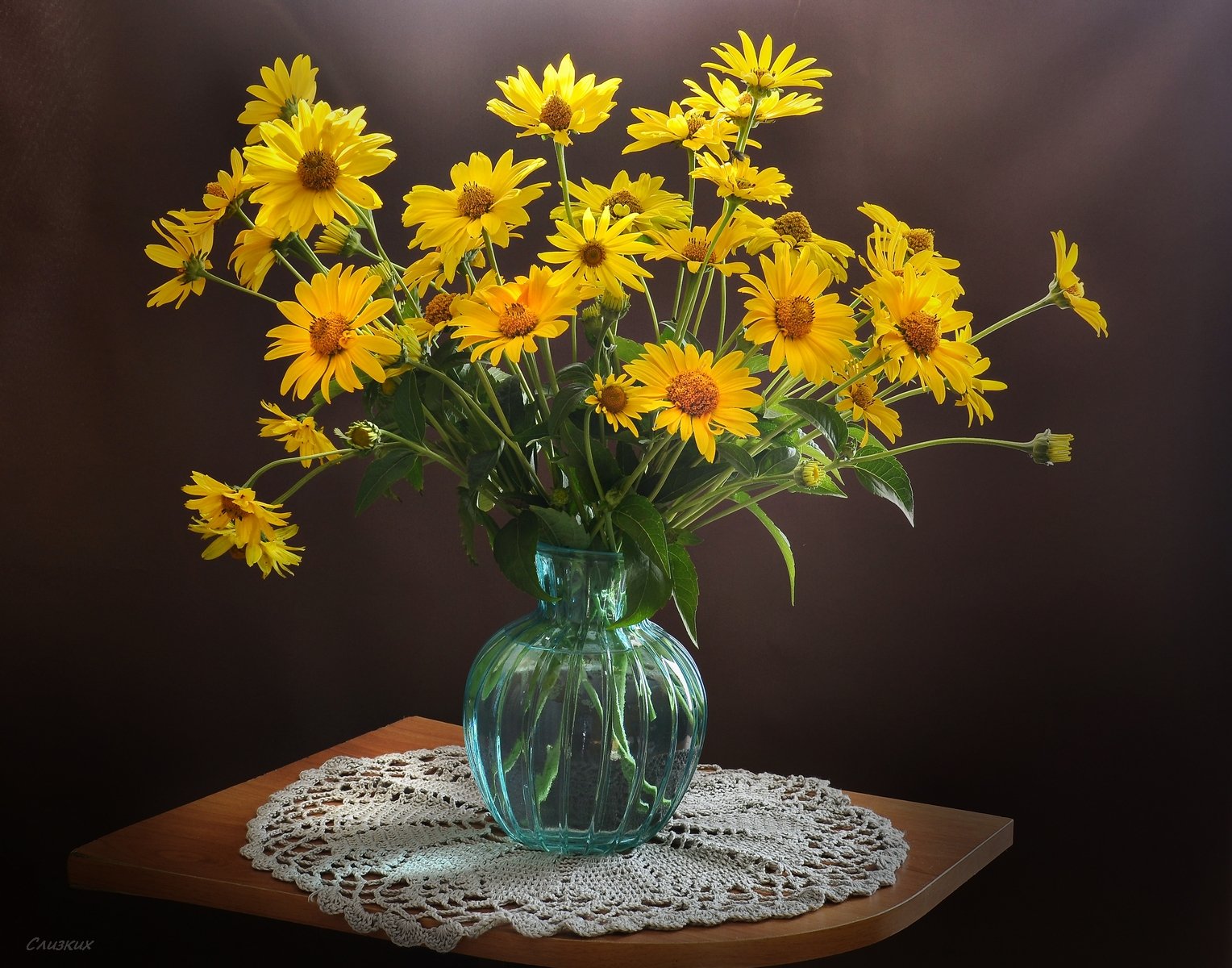 букет,лето,рудбекия,ваза,салфетка,аромат,красота, Инаида