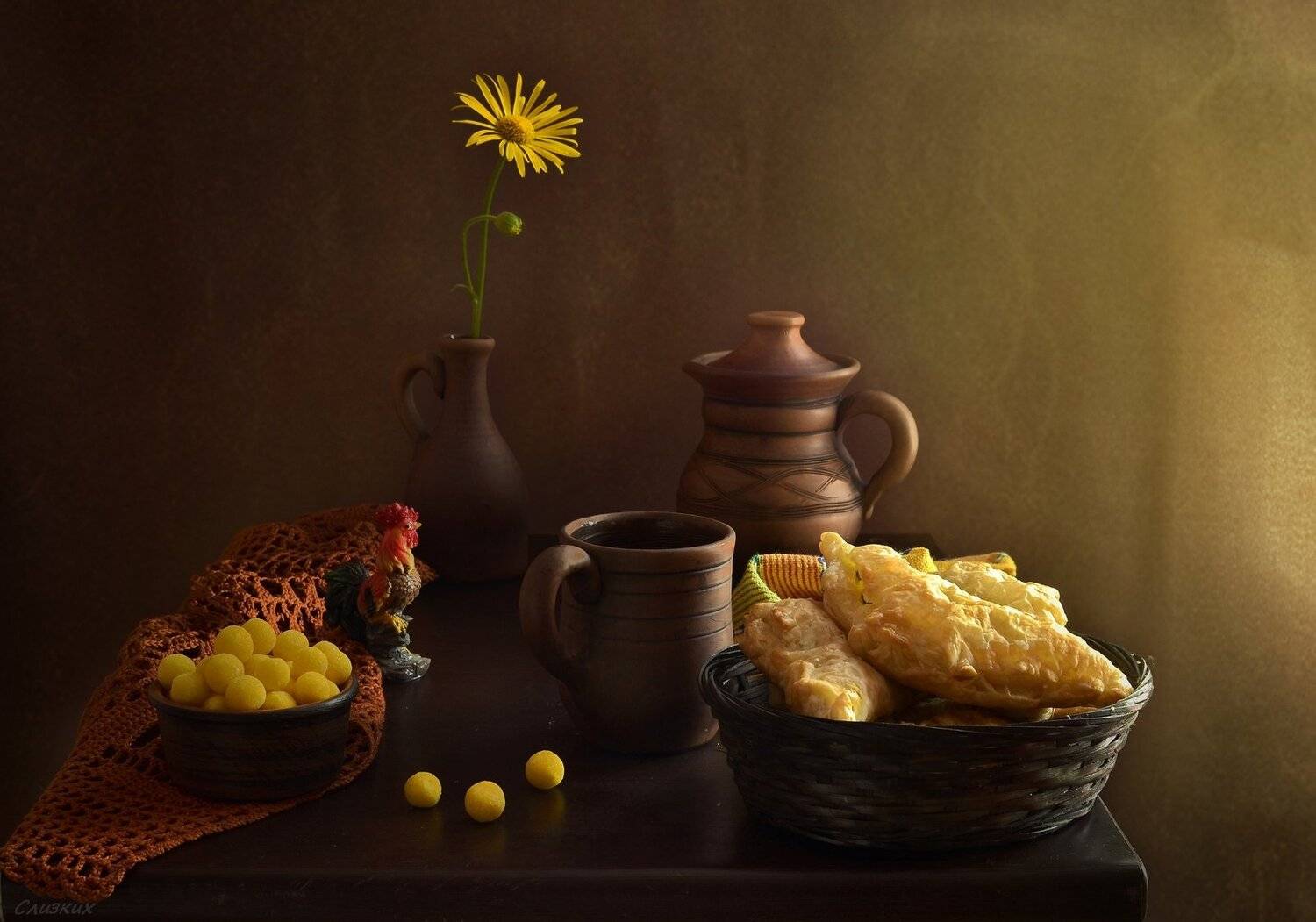 натюрмортпосудапирожкикарамель утролетоцветокчай