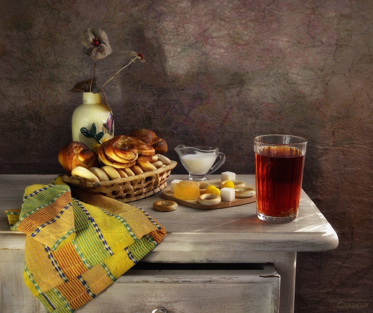 натюрморт,тумба,чай,стакан,сушки, Инаида