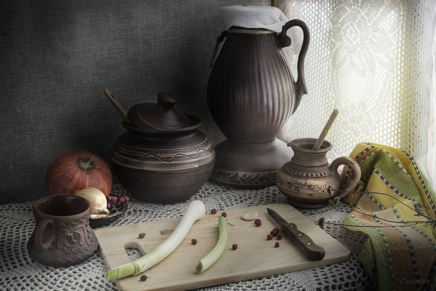 натюрмортлуксветкувшинхлебкомпозициякерамика