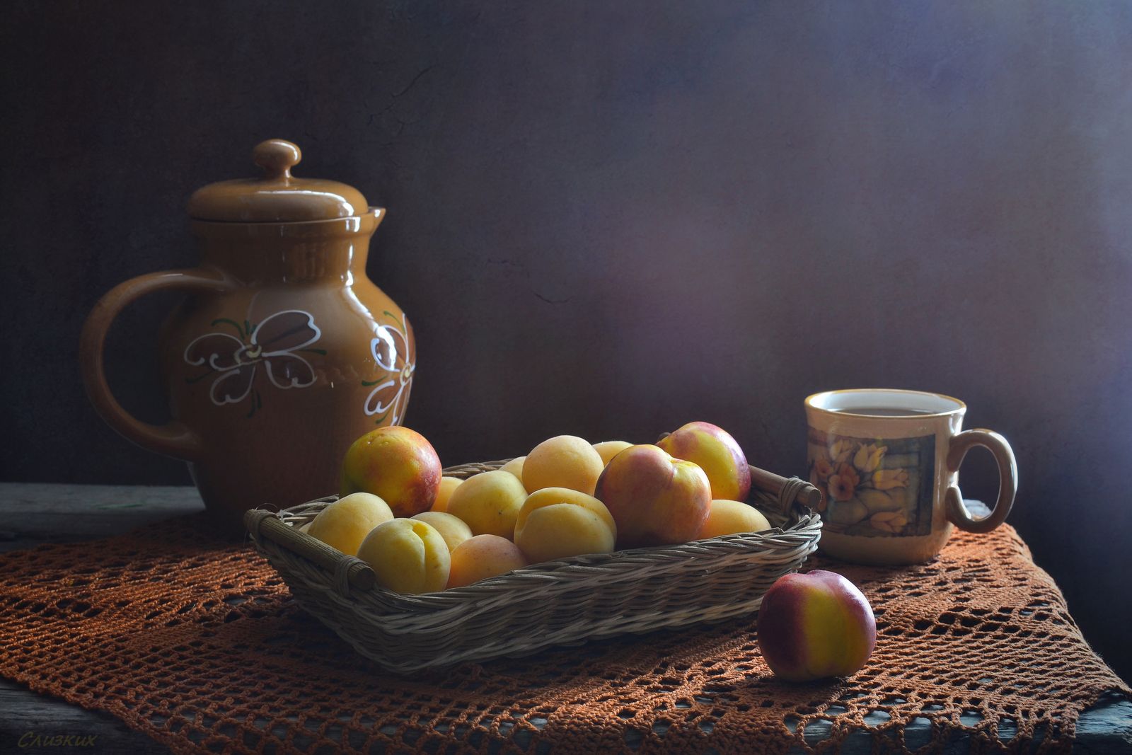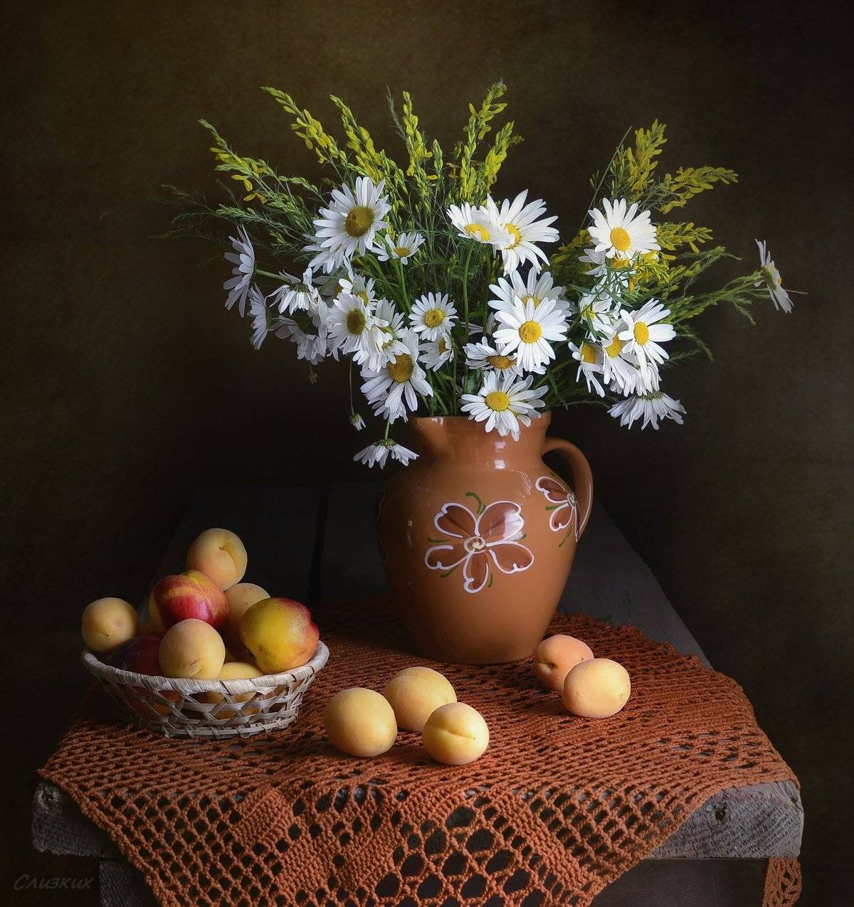 натюрморткомпозициясветлетобукетабрикосыкувшин